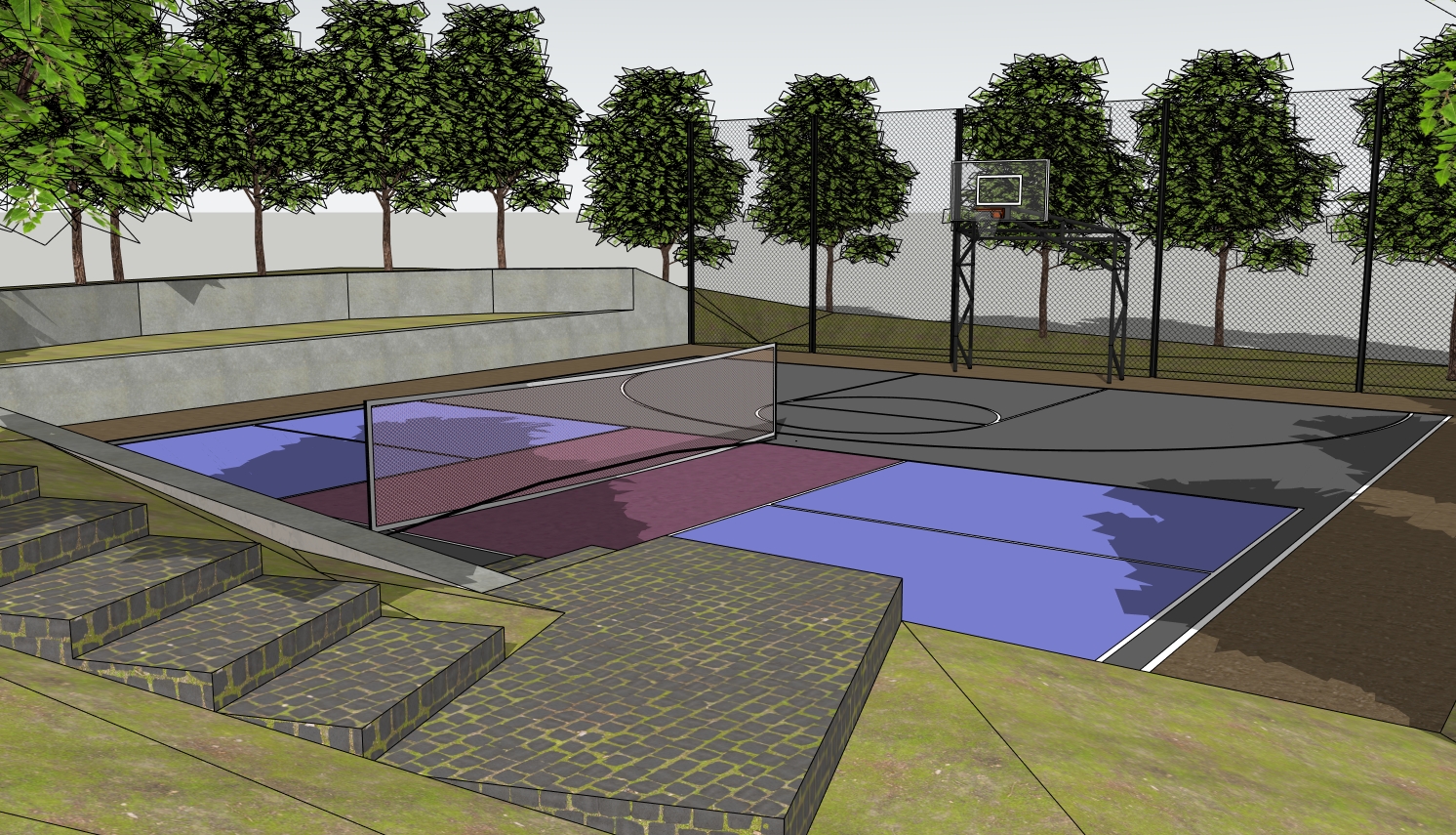 sunny day trees ar all random size like in the woods