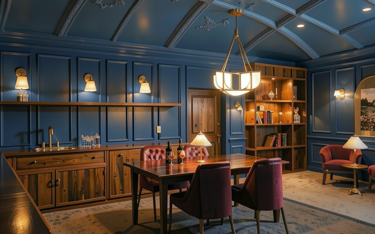 blue vaulted ceiling same blue no beams on top