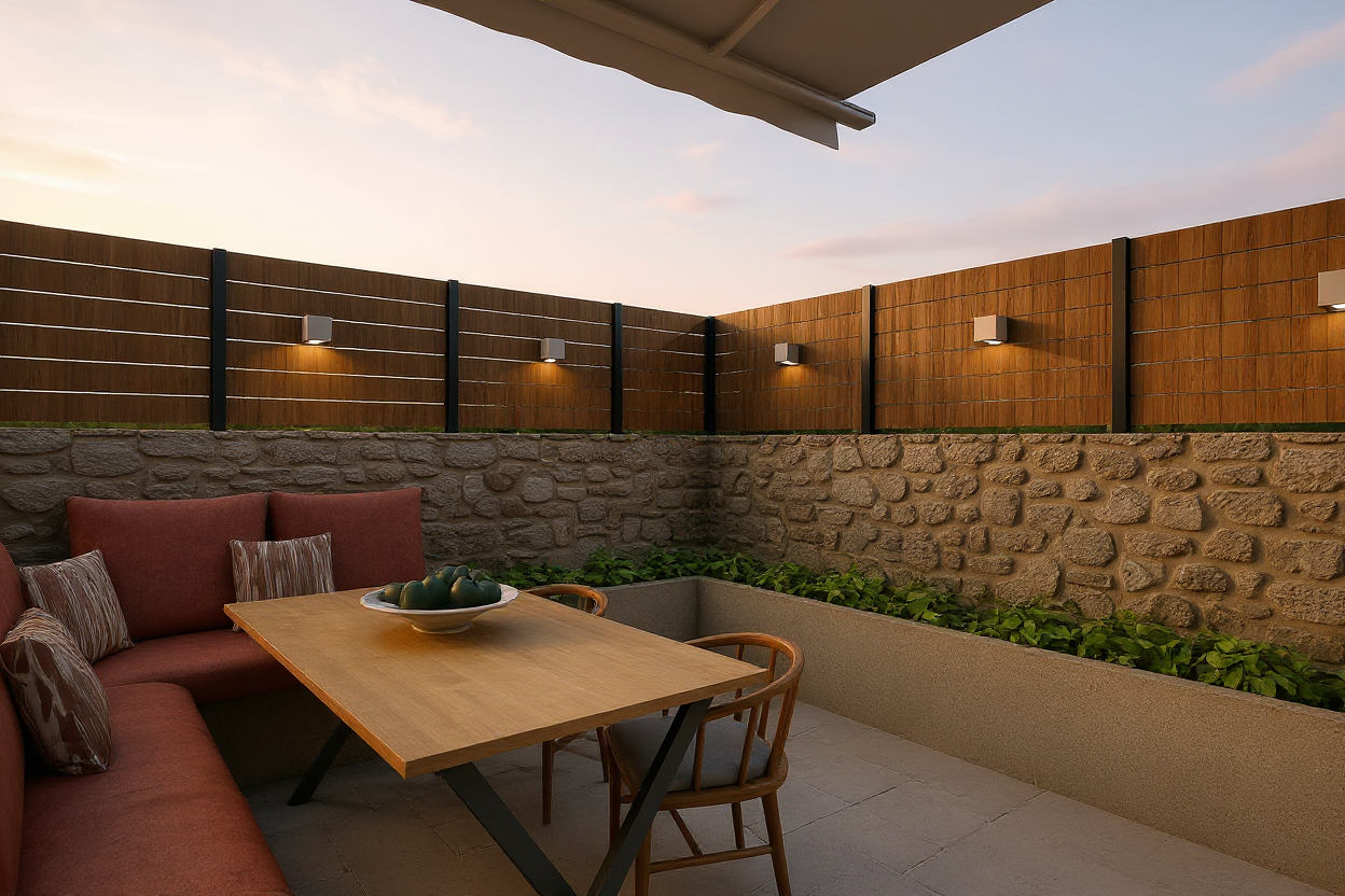 modern kitchen with an island of cabinets with a built in oven cashmere gray cabinets and a cabinet on the right in a light wood decor artificial stone cladding and worktop white worktop spot light ceiling lighting and a suspended light above the island minimalist kitchen with warm tones architecture