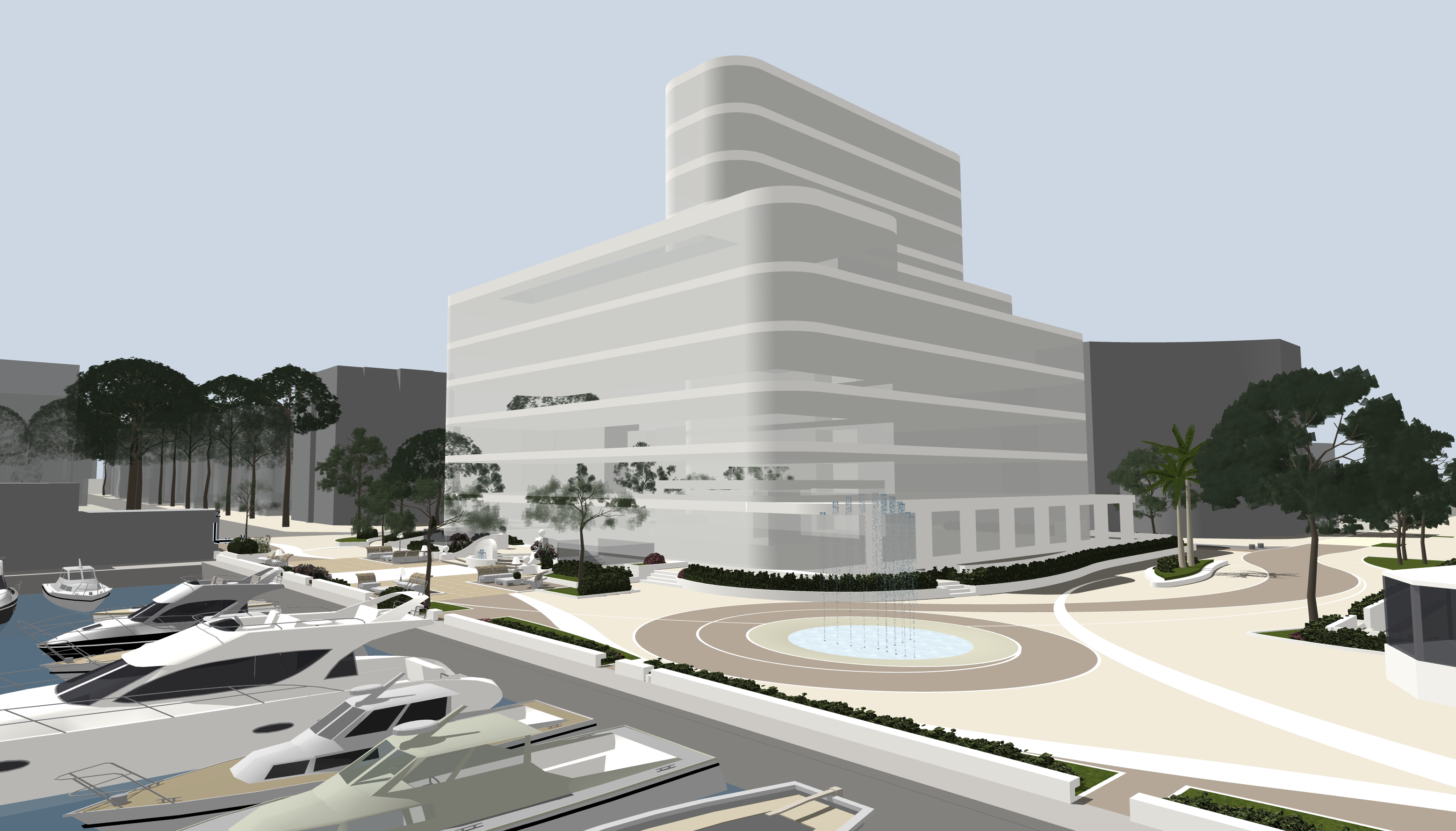 zaha hadid exterior shot a new 5 star hotel on the dock it uses an architectural language reminiscent of luxury yachting with the dominant color being white it features deep loggias and numerous overhanging balconies especially on the upper floors with wooden slatted ceilings lots of hanging greenery fully glazed walls lush greenery on every floor architecture
