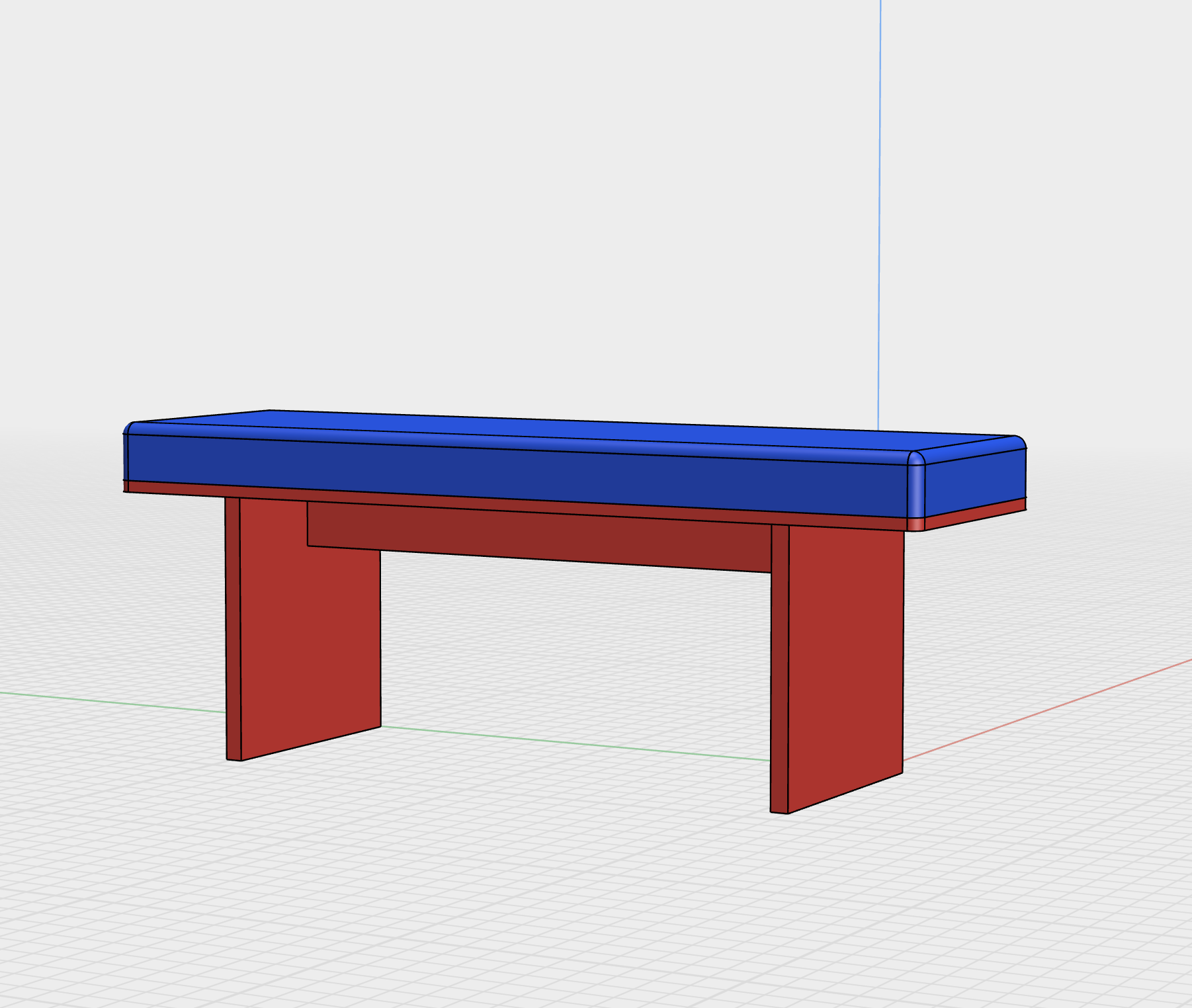 make a hiper realist render of this bench in a minimalist white background make the feet red in aged brass make the upholstery blue in light chocolate plain leather