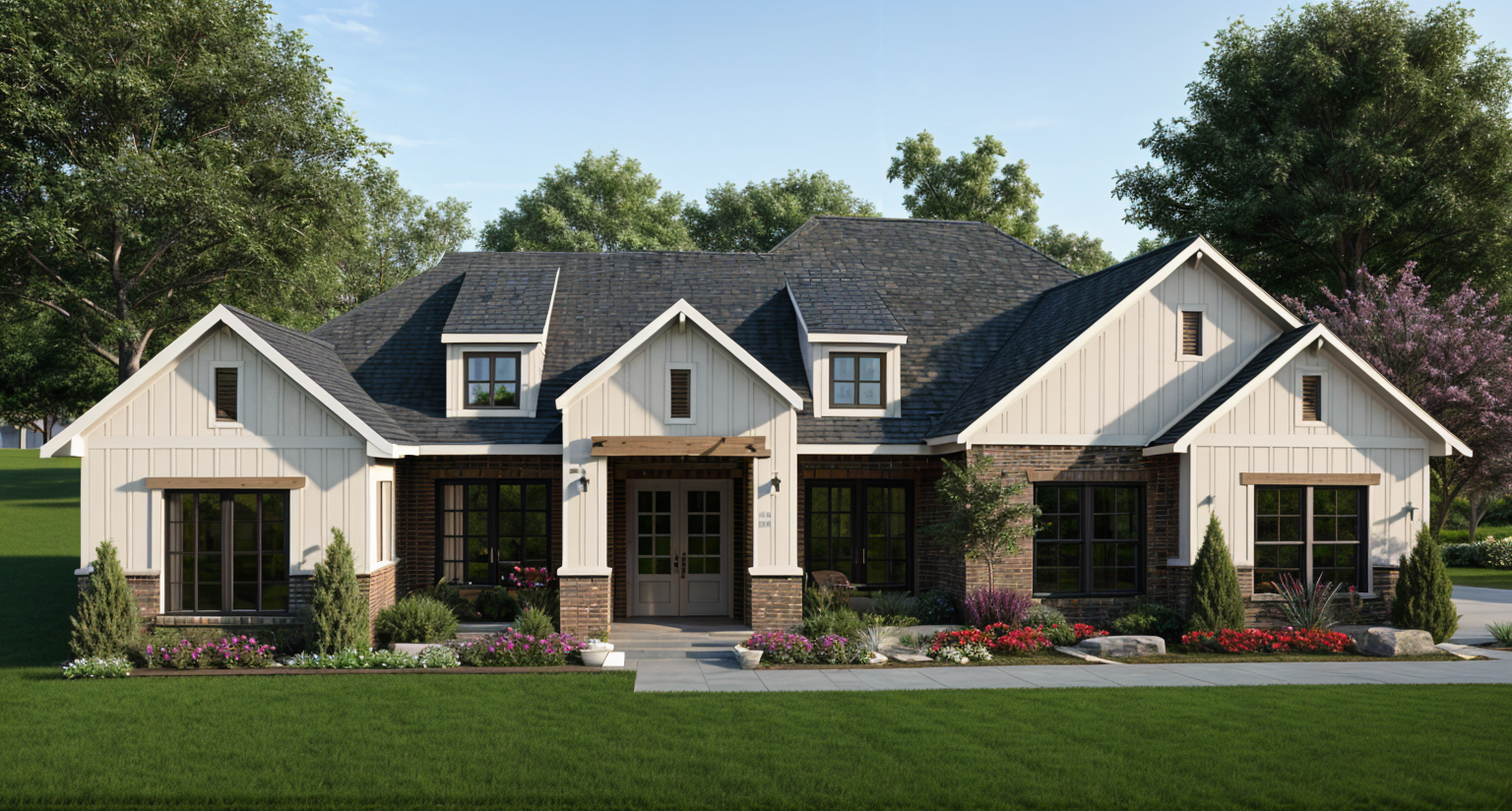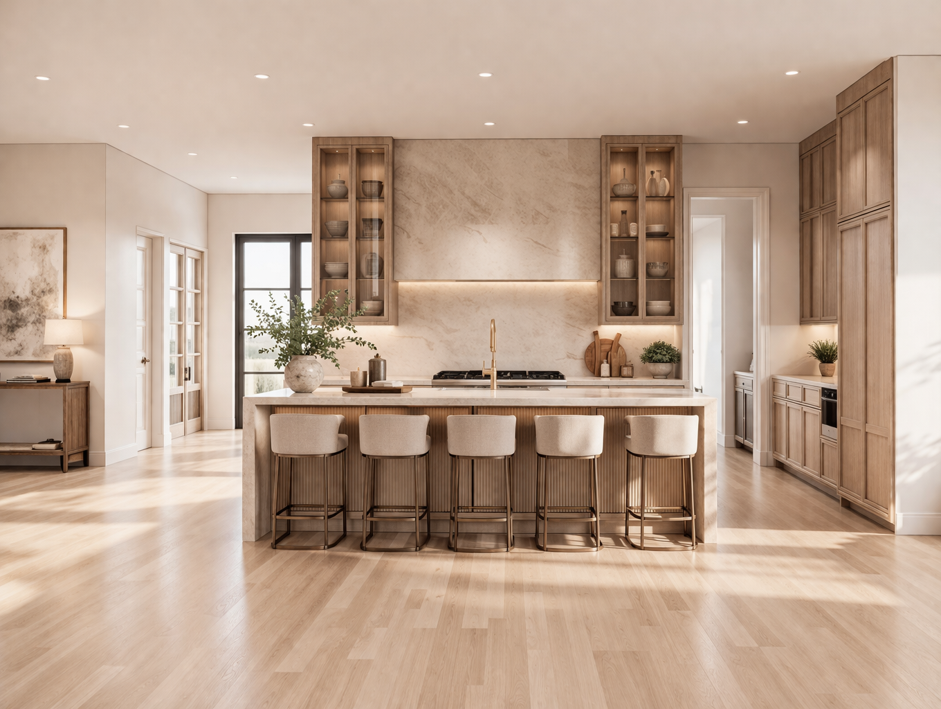 convert this architectural rendering into a highly realistic editorial style luxury real estate photograph suitable for marketing and listing imagery maintain the exact architecture layout geometry window placement and proportions exactly as modeled do not redesign restyle or modify the architecture in any way do not move walls windows fireplaces cabinetry or structural elements enhance realism only through natural lighting accurate material texture subtle reflections and soft shadow depth the image should feel like a professionally photographed architectural digest style interior used for luxury real estate marketing natural light should be softly entering through the windows in an editorial photography style creating gentle highlights natural interior bounce light and subtle shadow depth similar to high end architectural photography the final image should appear highly realistic refined and editorial similar to a luxury architectural digest feature or professionally photographed high end listing do not alter architecture layout geometry or materials only enhance realism and staging