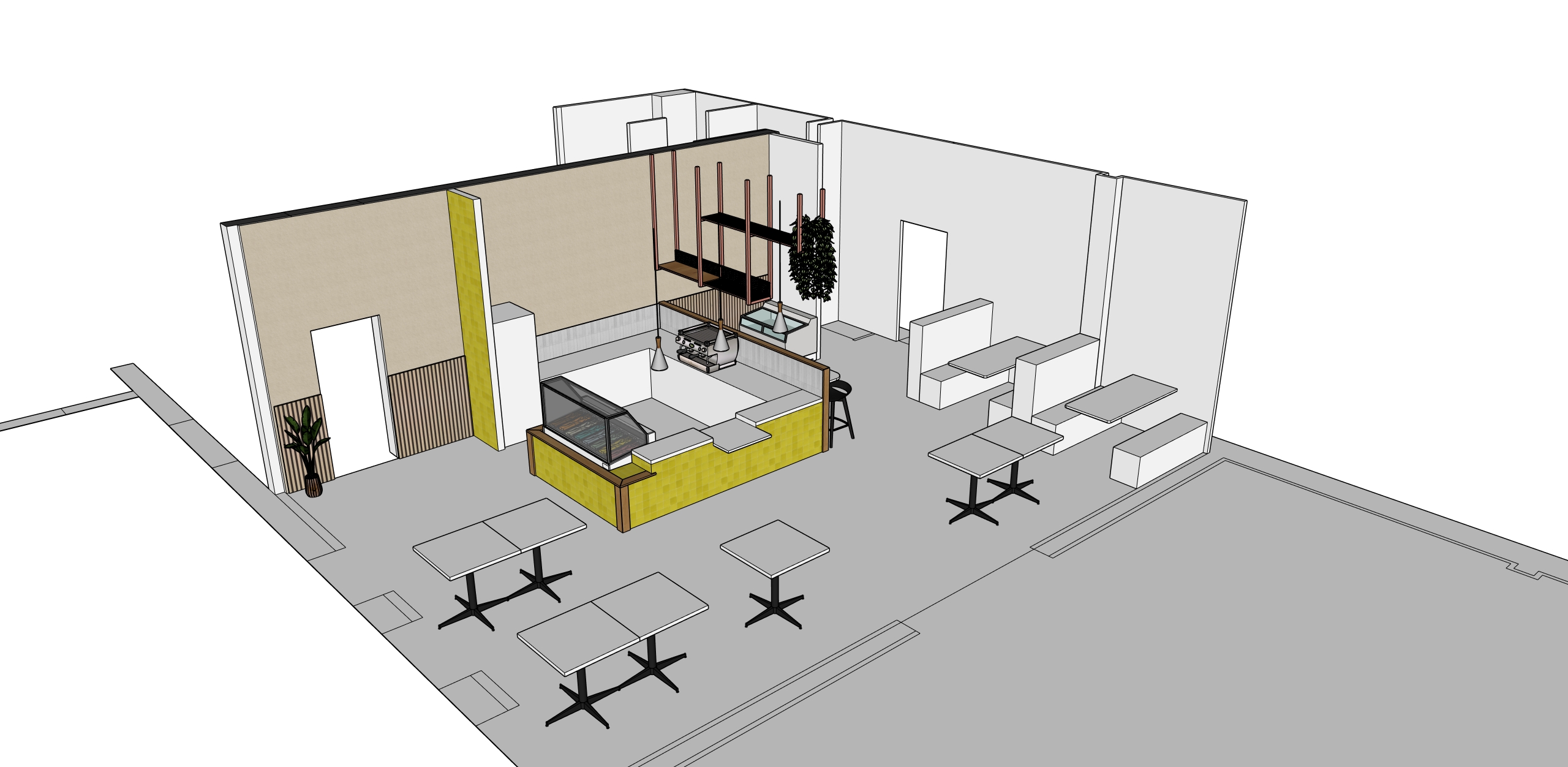 remove background add chairs to tables keep the floor from the first render