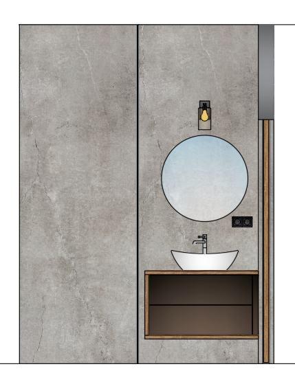 zaha hadid interior shot badezimmer kasten mit holzrahmen 2 laden mit dunkelbraunen fronten und mauerblende rechts eine schiebet re links eine raumhohe glaswand mit dusche dahinter architecture