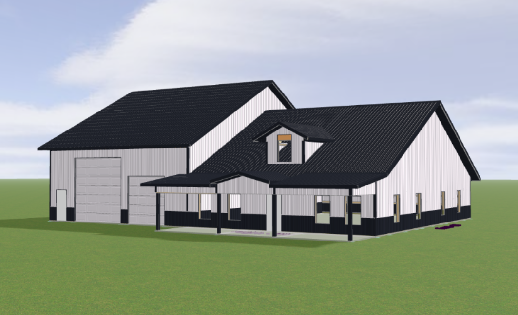 make this look real put a concrete driveway and concrete under the front porch add a decorative black front door with glass make it a sunny day with green grass and small trees native to iowa