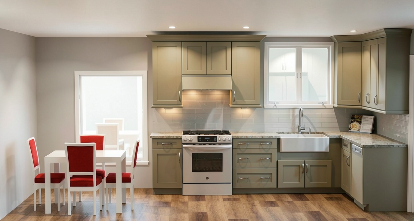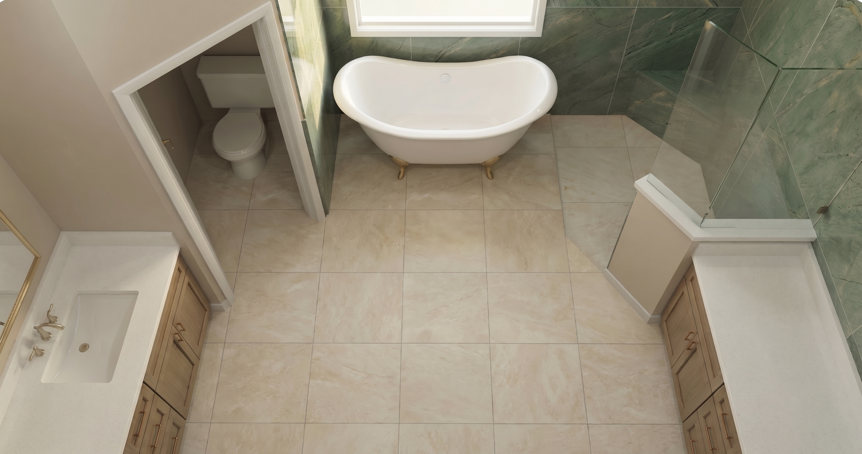 create a detailed architectural rendering of a multi level house floor plan for the planta baja use soft gray for walls warm wood textures for flooring and a serene aquamarine for the pool the outdoor terrace should have lush greenery with emerald and jade hues depict the entrance path with earthy sand tones and use olive green for the sprawling garden areas the interior should have cream colored walls and rich dark wood floors lastly the overall atmosphere should be modern elegant and inviting with sunlight casting gentle shadows
