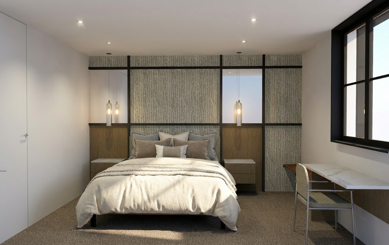 keep all colors and textures the same provide medium sized modern abstract painting above bed