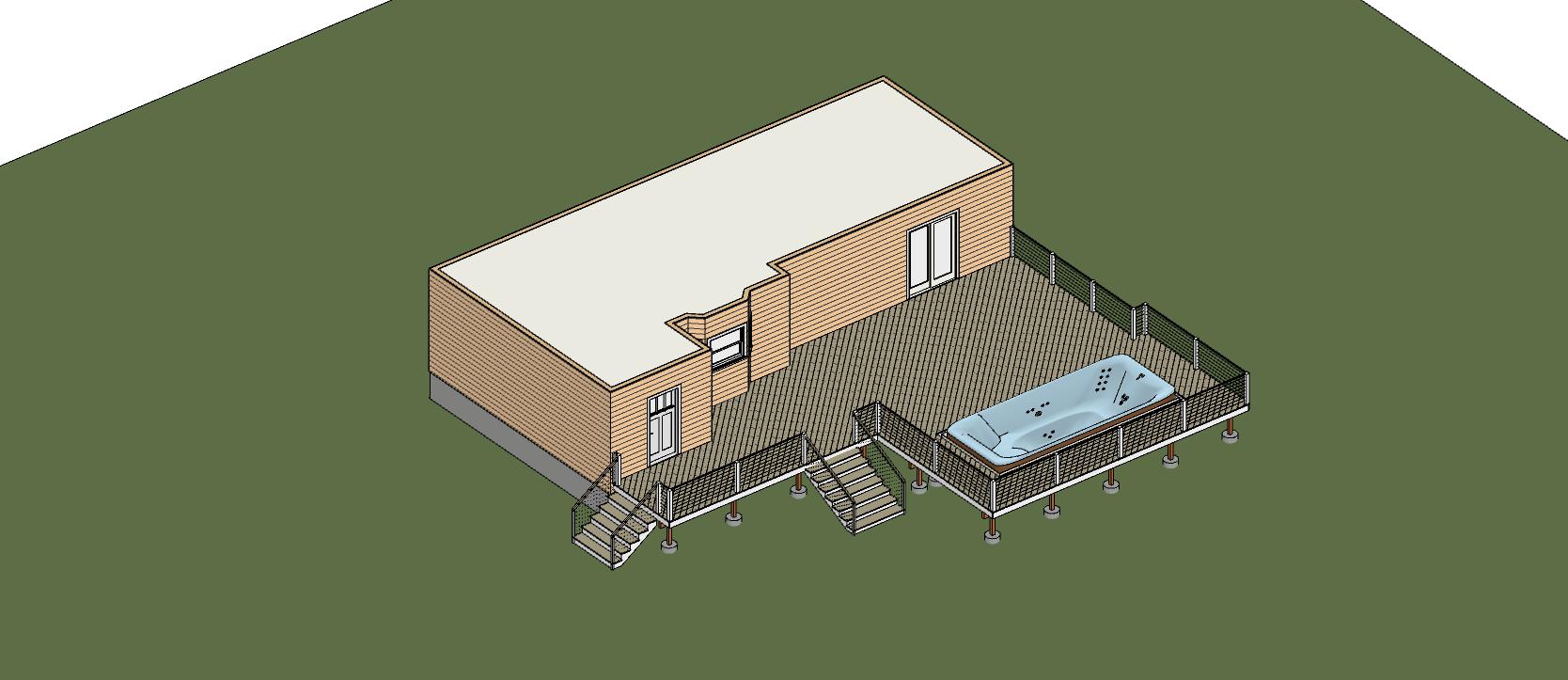 make the photo as realistic as possible the railing components should be the same color the railing is horizontal wire style the hot tub remains in the exact same position and height above the deck which is 6 inches architecture