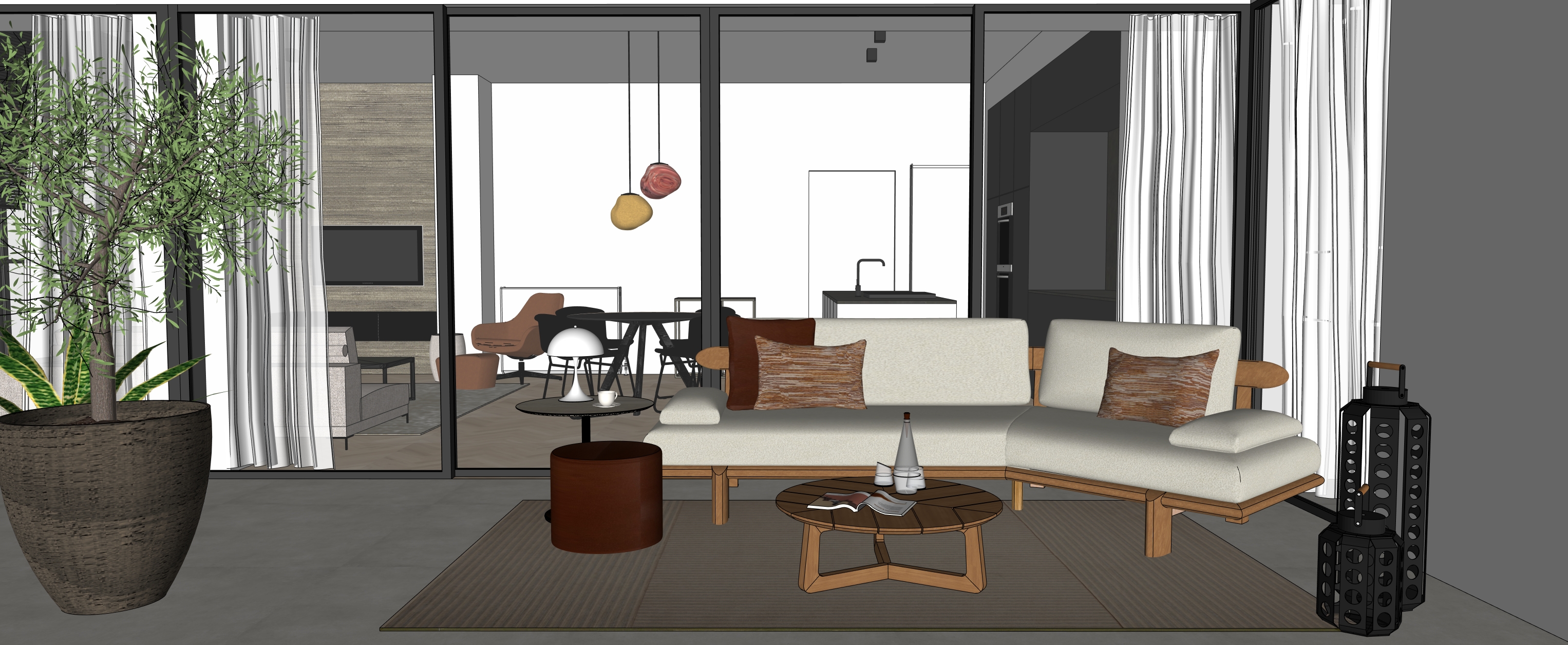 make a realistic appartment terrace with warmer daylight realistic subtile reflection of city hasselt pouf and a pillow are in brown velvet for the other two pillows keep the color and texture flower pots in anthracite with texture keep rug and keep everything as it is