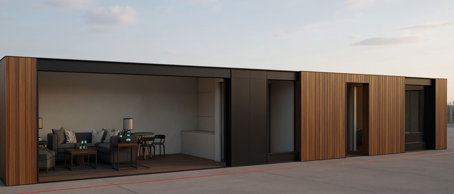 render a charming suburban house with a sophisticated design the roof is composed of warm earthy charcoal shingles contrasted with soft cream colored walls large windows dominate the front with elegant white frames adding a touch of modernity the surrounding environment is lush and inviting with a green lawn and vibrant colorful flowers in bloom the atmosphere is peaceful and serene bathed in the golden light of a setting sun casting long shadows and a warm glow over the scene