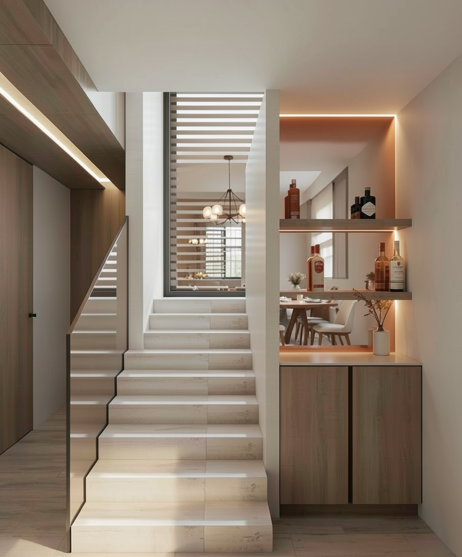 create a serene and luxurious bathroom scene based on the given layout the room dimensions are narrow approximately 11 x 6 design a modern japanese scandinavian bathroom from the pov of the entry on the right is the toilet followed by a minimalist walnut wood floating vanity with a sink sunk into it on either side of the mirror and handblown glass light fixtures in front of the viewer on the back wall is a fully enclosed shower area a dark green tiled spa steam shower the doors to the shower slide and seal to hold in steam on the left opposite the vanity include a dark brown stone freestanding oval bathtub on the left that sits directly on the floor include two small windows on the left above the tub that allow direct sunlight in use a color palette of neutral tones charcoal wood stone for a zen calming effect with matte brass fixtures the atmosphere should be peaceful and spa like inviting relaxation and tranquility no plants add dark walnut herringbone flooring try some new materials like sugi ban charred wood make it more rustic looking now make it narrower darker sexier and moodier keep everything the same and only change the windows to be larger but leave the windows in the same place above the tub change the green tile to earth colored plaster walls remove the doors and move the toilet to the lower right corner
