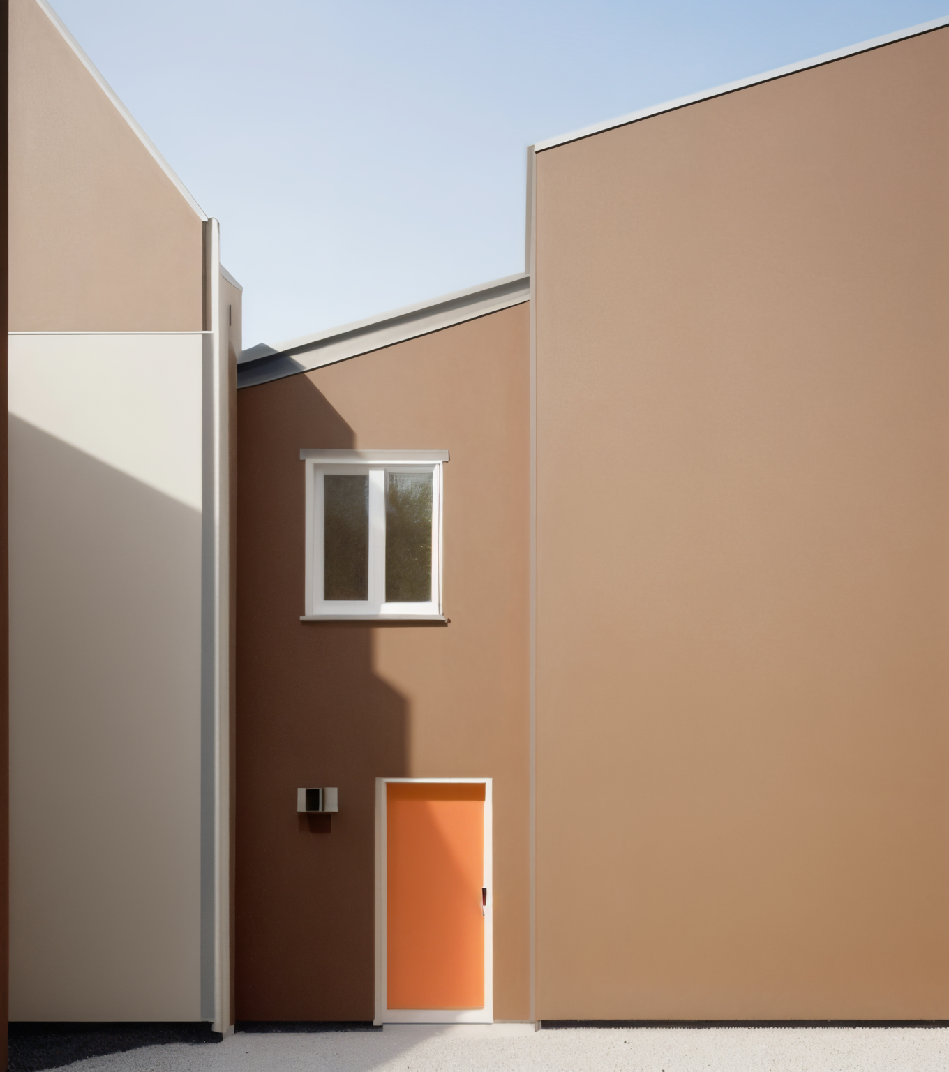 minimalism perspective shot make the color of the door dark orangey brown walls very very light mocha almost white architecture