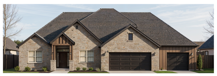 keep everything in this image exactly the same lighting shadows perspective stone roof garage doors and all materials only make these precise edits change the window grids and frames to a light warm cream color similar to sherwin williams alabaster change only the board and batten siding the vertical wood panels to a neutral tan taupe color with soft greige undertones similar to benjamin moore edgecomb gray keep the same texture grain and finish of the wood do not change any other parts of the image or shift the overall tone contrast or lighting