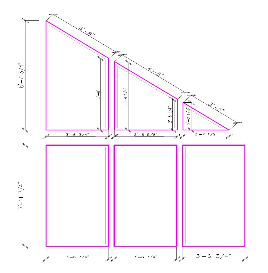 create an image of this elavtion the elevation would show three pairs of windows six windows total arranged side by side in two rows overall structure the windows are separated horizontally by vertical wood columns that are 3 5 inches wide a 12 inch high wood beam runs horizontally to separate the three top windows from the three bottom windows window details all six windows have black aluminum frames layout top row three separate windows separated by the 3 5 inch vertical columns wood beam a 12 inch high solid wood beam runs continuously beneath the three top windows bottom row three separate windows separated by the same 3 5 inch vertical columns positioned directly beneath the beam this arrangement creates a gridded six panel visual with a strong horizontal band from the wood beam and vertical divisions from the columns architecture