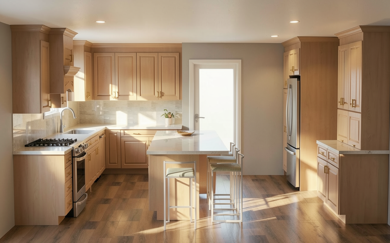 photorealistic high end architectural visualization of an existing building absolute constraint the architecture must remain strictly identical to the input image no modification of geometry structure proportions or design preserve all architectural elements exactly windows balconies railings facade layout no reinterpretation no redesign no added or removed elements structure lock perfect match to original image composition camera angle framing and perspective must remain unchanged pixel accurate architectural fidelity controlled modification targeted only the central building facade must be modified apply a clean uniform white finish to the central facade only smooth painted or plastered white surface perfectly even no texture noise no stains no color variation keep all window frames borders and structural outlines in their original light grey color do not repaint or alter frames railings or openings do not affect adjacent buildings in any way ultra realistic render quality high end architectural visualization archviz studio quality physically based rendering pbr materials ultra detailed surfaces with subtle micro variation sharp details with realistic material response accurate reflections on glass and surfaces controlled subtle imperfections for realism lighting premium spring look warm natural sunlight soft golden tone spring atmosphere fresh and slightly vibrant colors soft global illumination and realistic bounce light balanced contrast soft shadows clean blue sky with subtle gradient environment keep all surroundings identical street cars vegetation improve only realism of shadows reflections and lighting no added or removed objects render style ultra photorealistic architectural competition quality clean modern aesthetic hdr lighting 4k 8k level detail camera eye level architectural photography 35mm lens no distortion negative prompt no redesign no geometry change no new architecture no color change outside central facade no modification of window frames must stay light grey no stylization no artistic interpretation no blur no noise no low detail