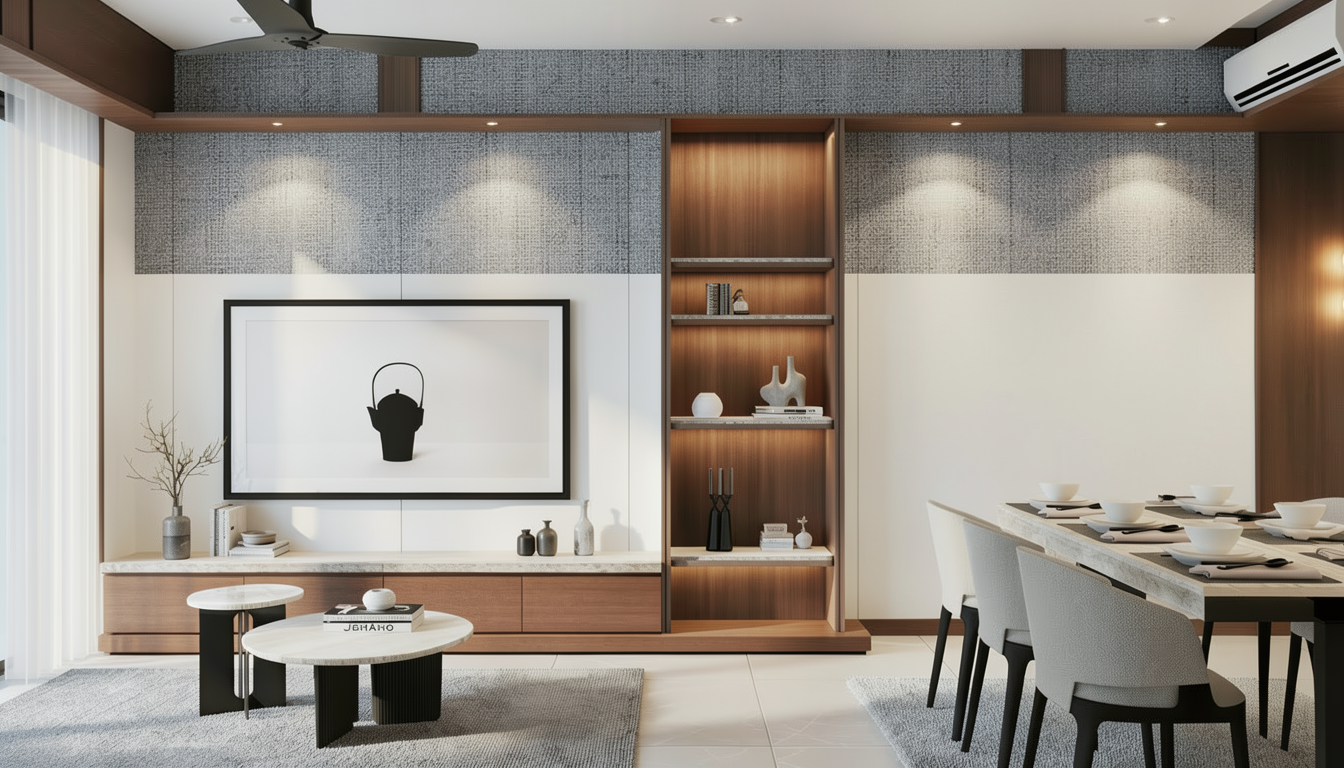 a serene architectural rendering of two curved modern buildings surrounded by a tranquil landscape the two storey buildings have sleek timber facades with large glass windows reflecting the sunlight both buildings have a roof terrace a small pond sits to the left pf the image the water mirroring the sky above with gentle ripples adding a touch of realism with people paddleboarding on the water surround the pond with lush vibrant green grass dot the scene with evenly spaced translucent trees casting soft shadows on the ground the atmosphere is calm and inviting with soft lighting to create a peaceful ambiance a road sweeps in front of the pond to the left of the image