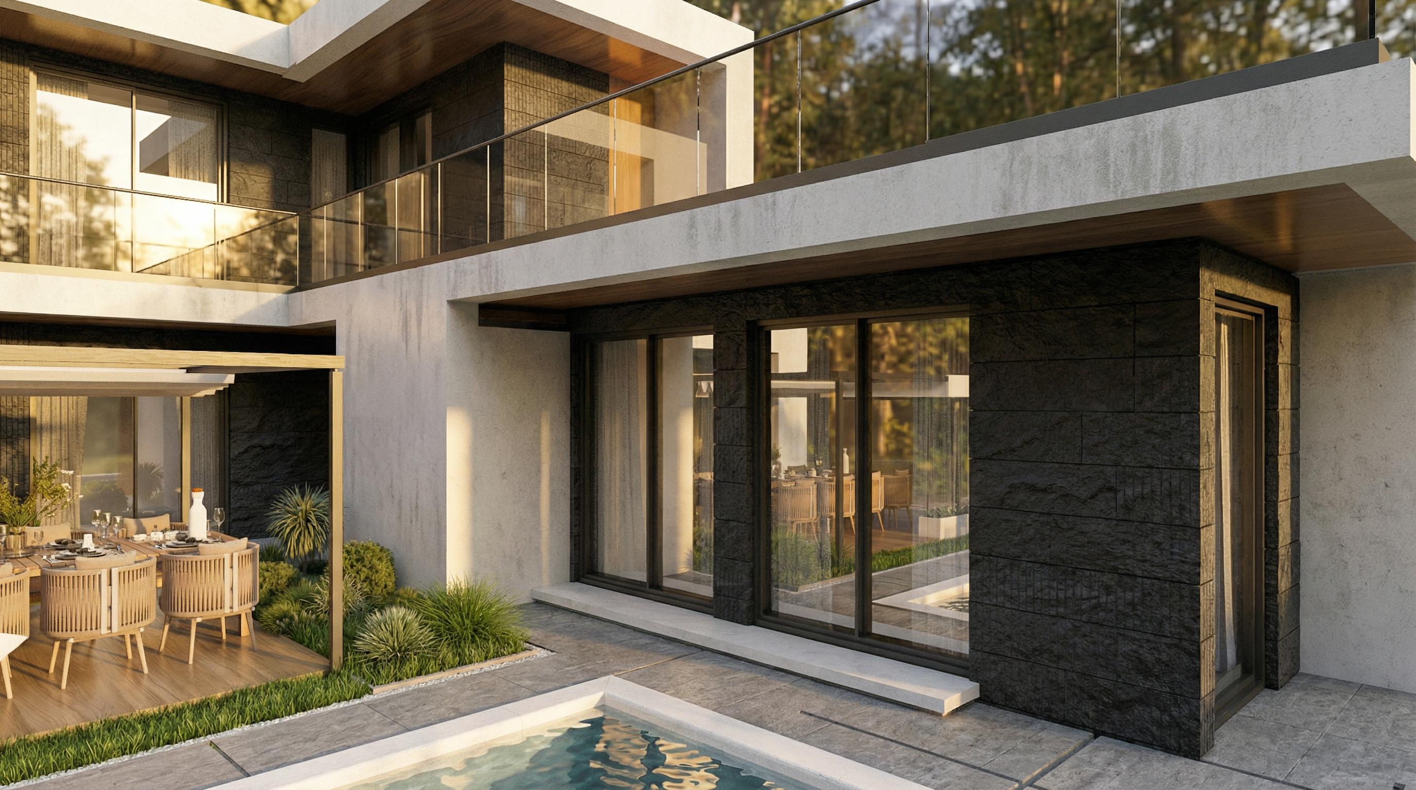 remove dimension lines shower all cabinetry in parchment colour white stone benchtop show microwave below bench to left hand side