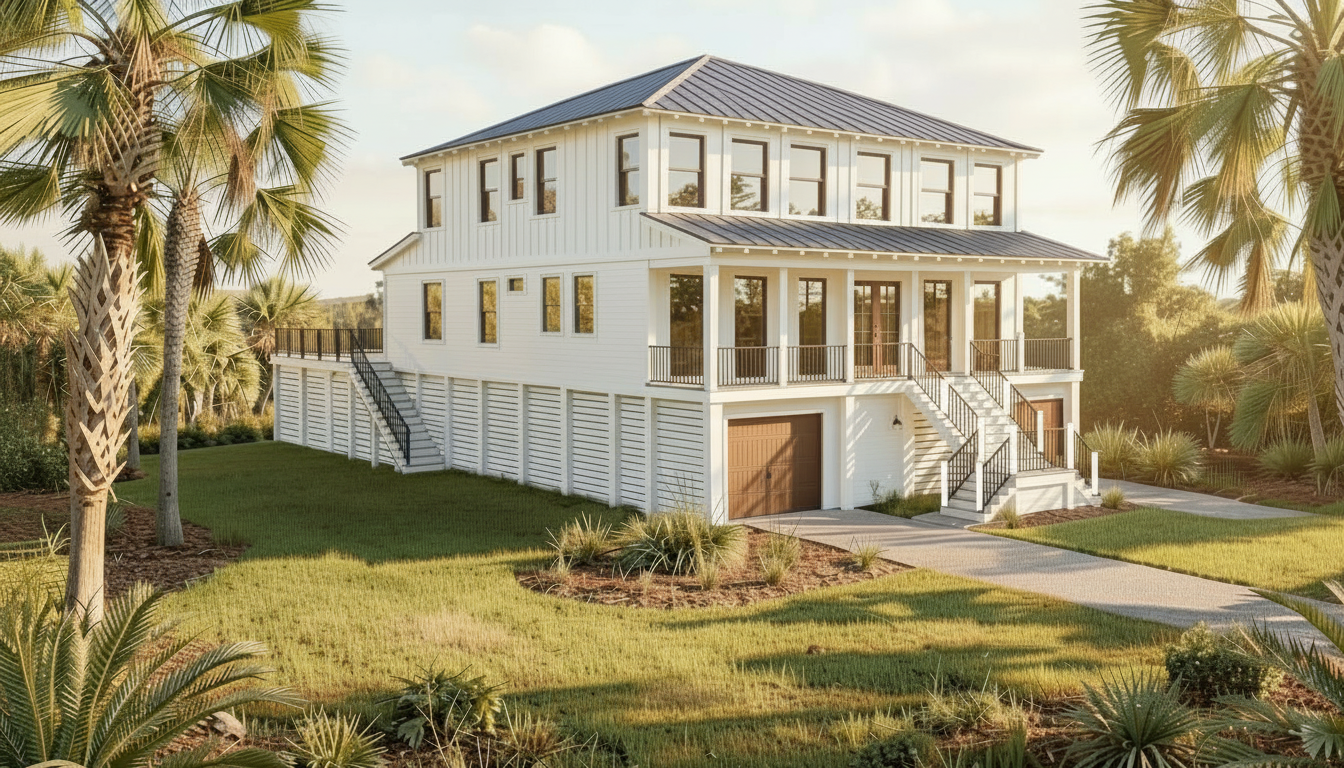 change the wood columns underneath the house and outdoor deck into shreded oyster shells concrete