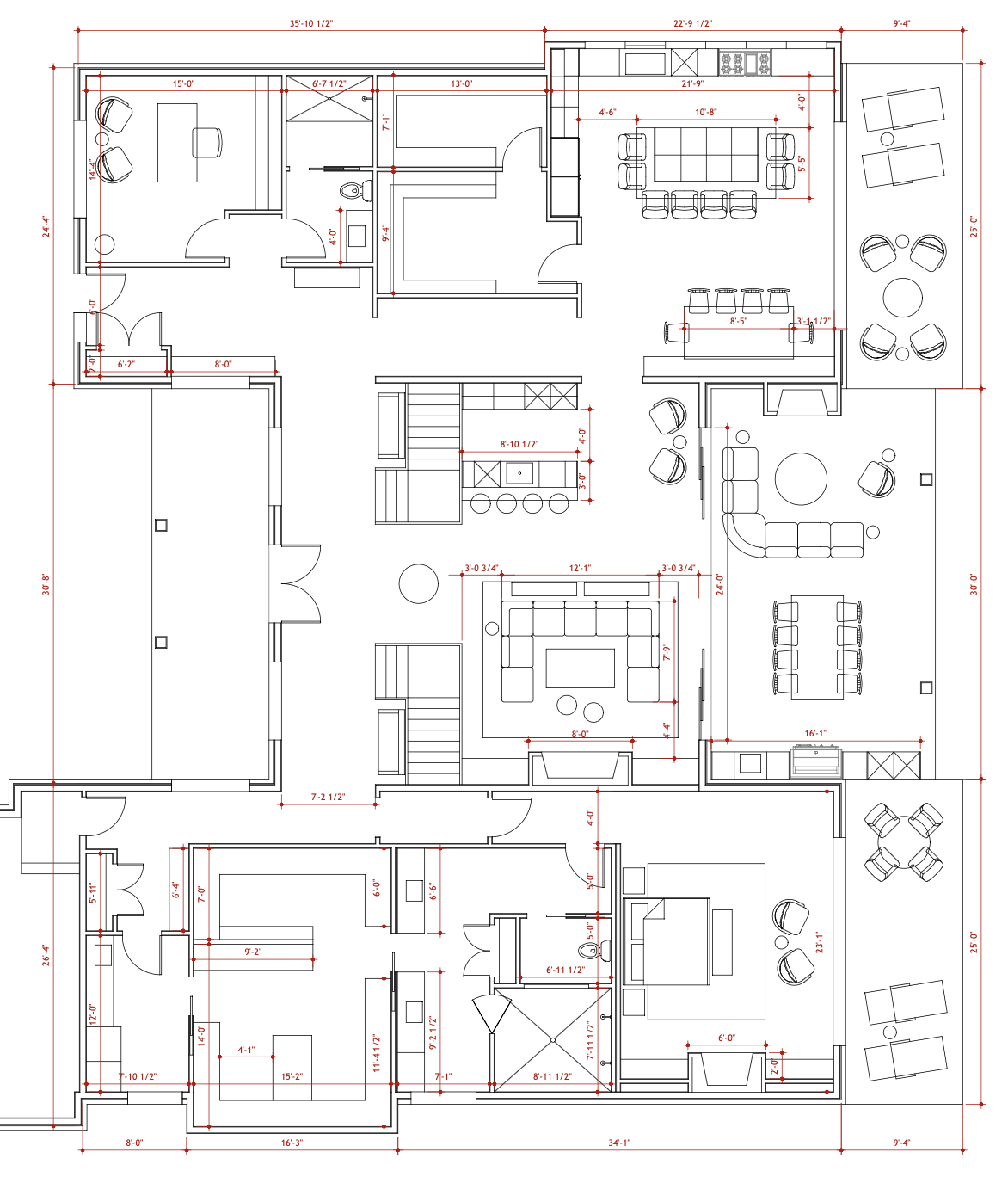 rendering showing all elements with warm tones and medium stained wood