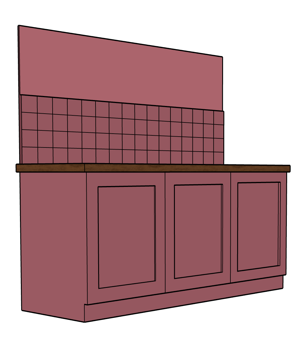 glazed dark pink tiles dark dark wood work surface dark pink painted cupboards