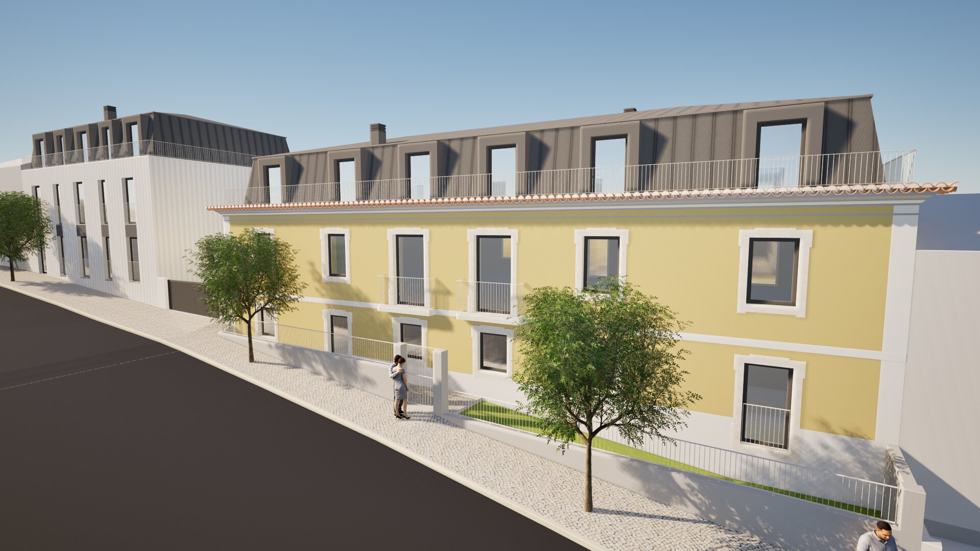 faz imagem hiper realista coloca um c u de ver o tirar o brilho do asfalto a fachada amarela passa a caf com leite claro