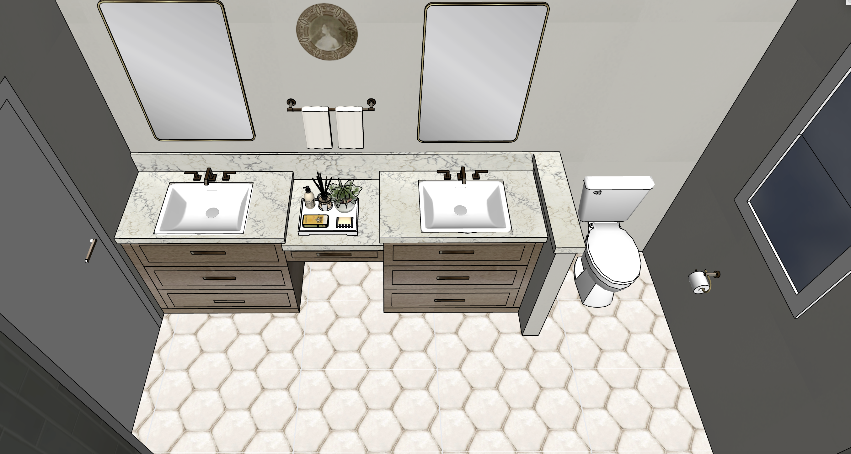 create an ultra realistic photo with natural sunlight coming from the window do not change any tile or color
