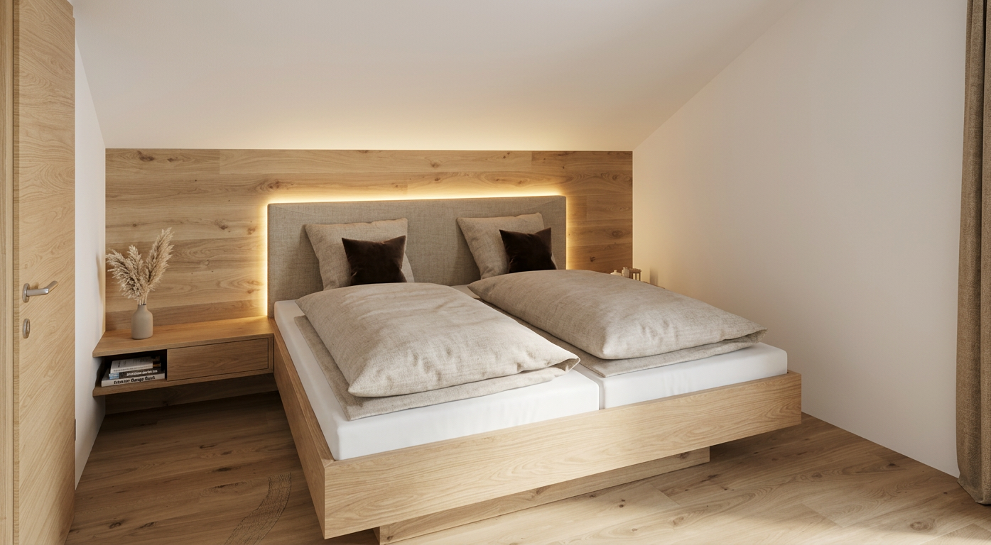 make the wood color to japandi wood and make the ambient render to off white