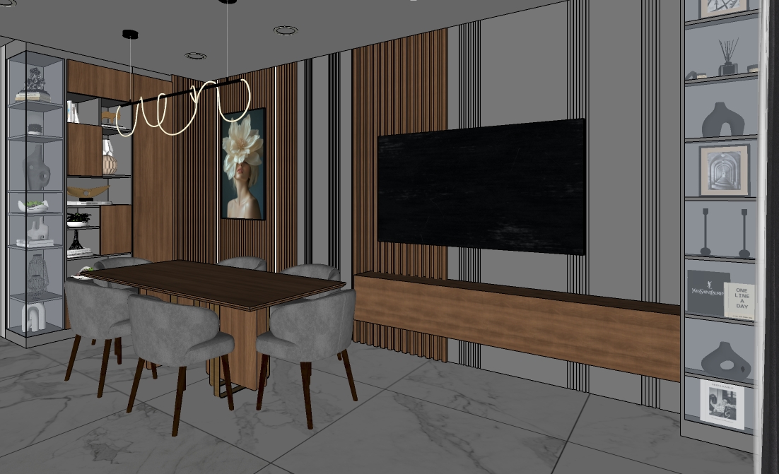 transform the provided image of the home interior into a high end photorealistic render with a bright atmosphere soft glowing accents and a calm luxurious minimalist energy while keeping everything exactly the same and the entire scene exactly as originally designed sunroom soft sunlight subdued led lighting hidden led lighting along the edge of the suspended ceiling light from the ceiling lamps and a fully lit chandelier