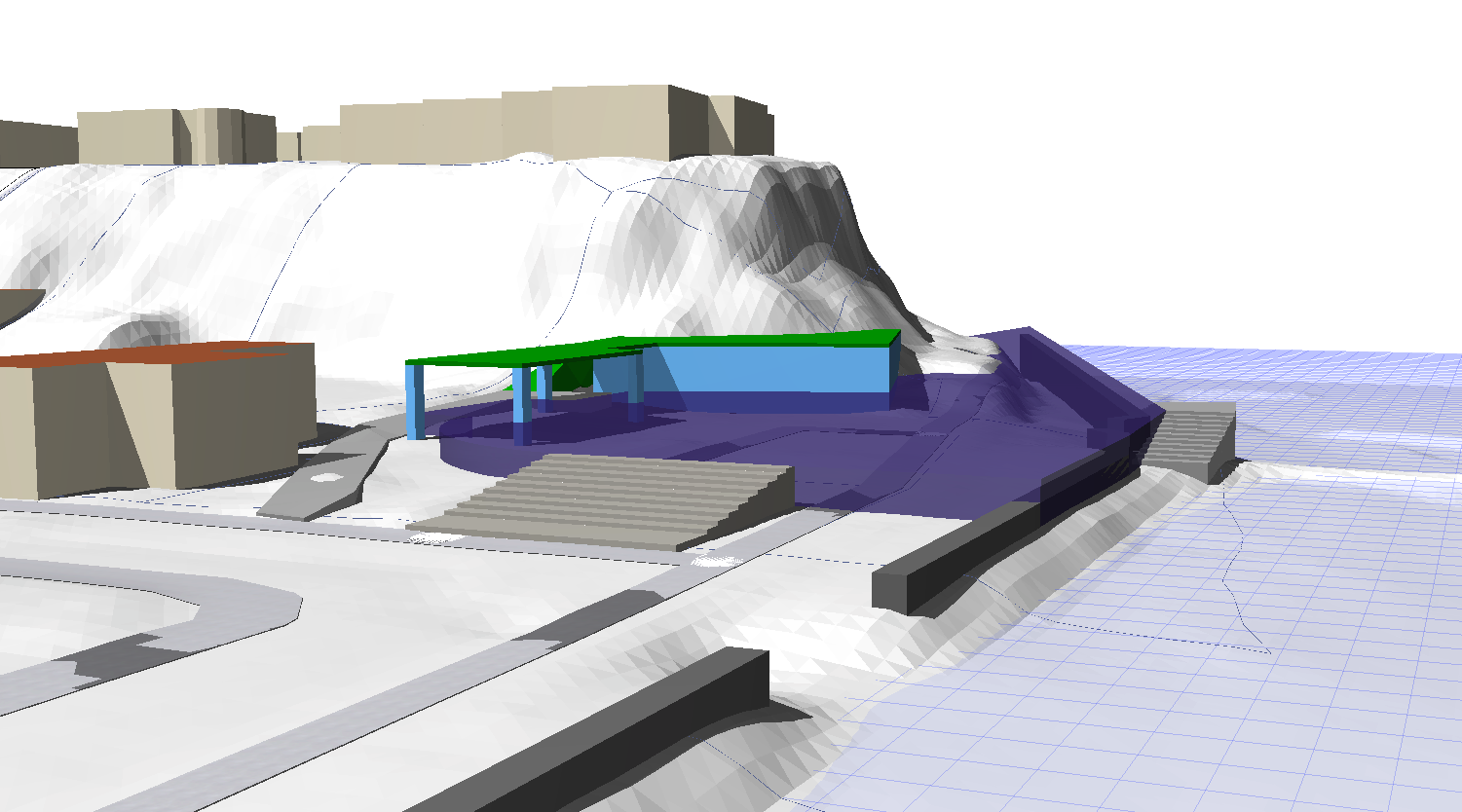 can you make this into a better massing diagram for a presentation keep simple please make the roof into a garden live roof