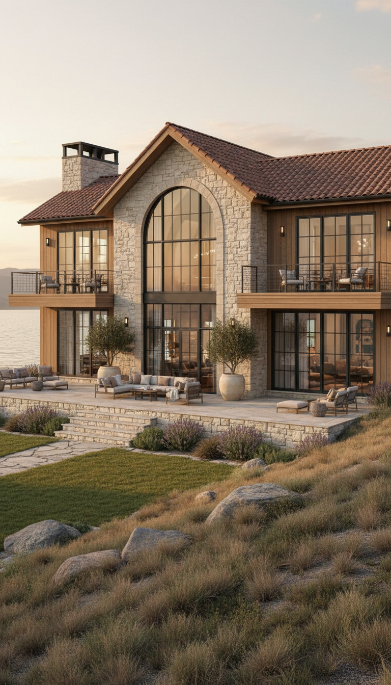 create a photo realistic rendering of a modern kitchen use deep walnut wood tones for the cabinets and island giving a rich luxurious feel the backsplash and range hood are adorned with a marble pattern in shades of brown and beige adding elegance incorporate matte black handles and fixtures for a sleek contrast the wall sconces should be in brushed brass for warmth and sophistication the flooring is a dark polished hardwood enhancing the overall depth the atmosphere is cozy yet modern with warm ambient lighting creating an inviting and stylish space make the space lighter all cabinet pulls and knobs will be brass the faucet will be matte black overall lighting warm balanced and slightly brighter than current sconces must cast visible downward light beams onto backsplash add soft under cabinet lighting glow do not overexpose or wash out materials maintain warm high end interior mood