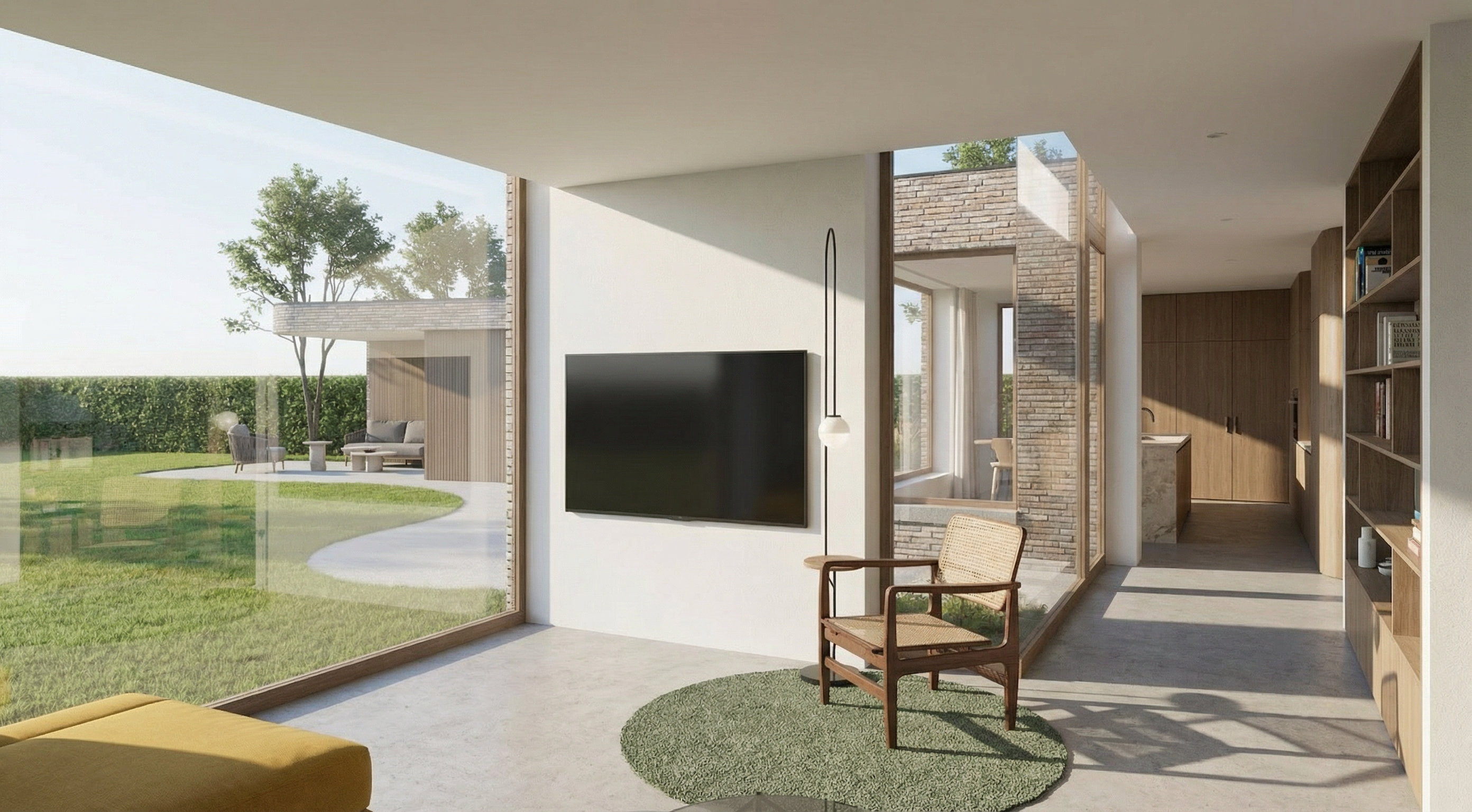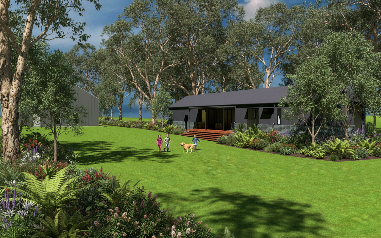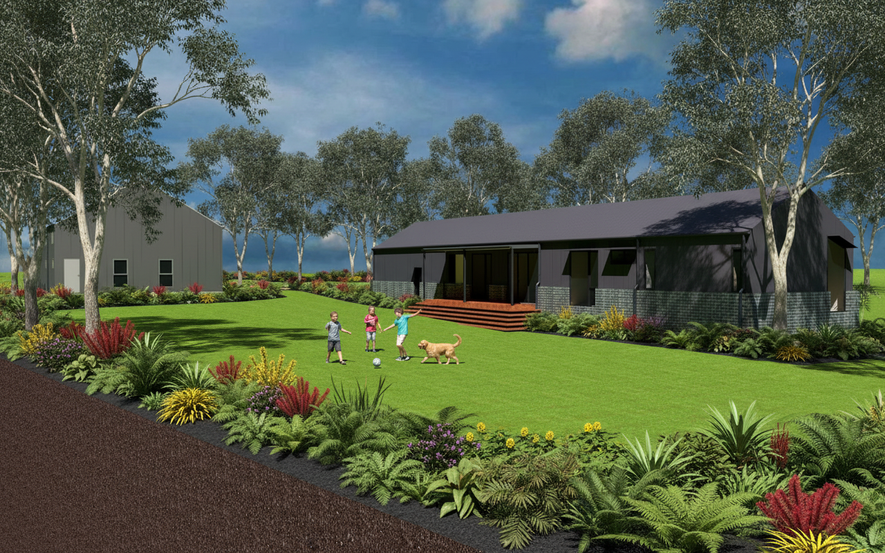 lush green lawn scattered tropical landscing