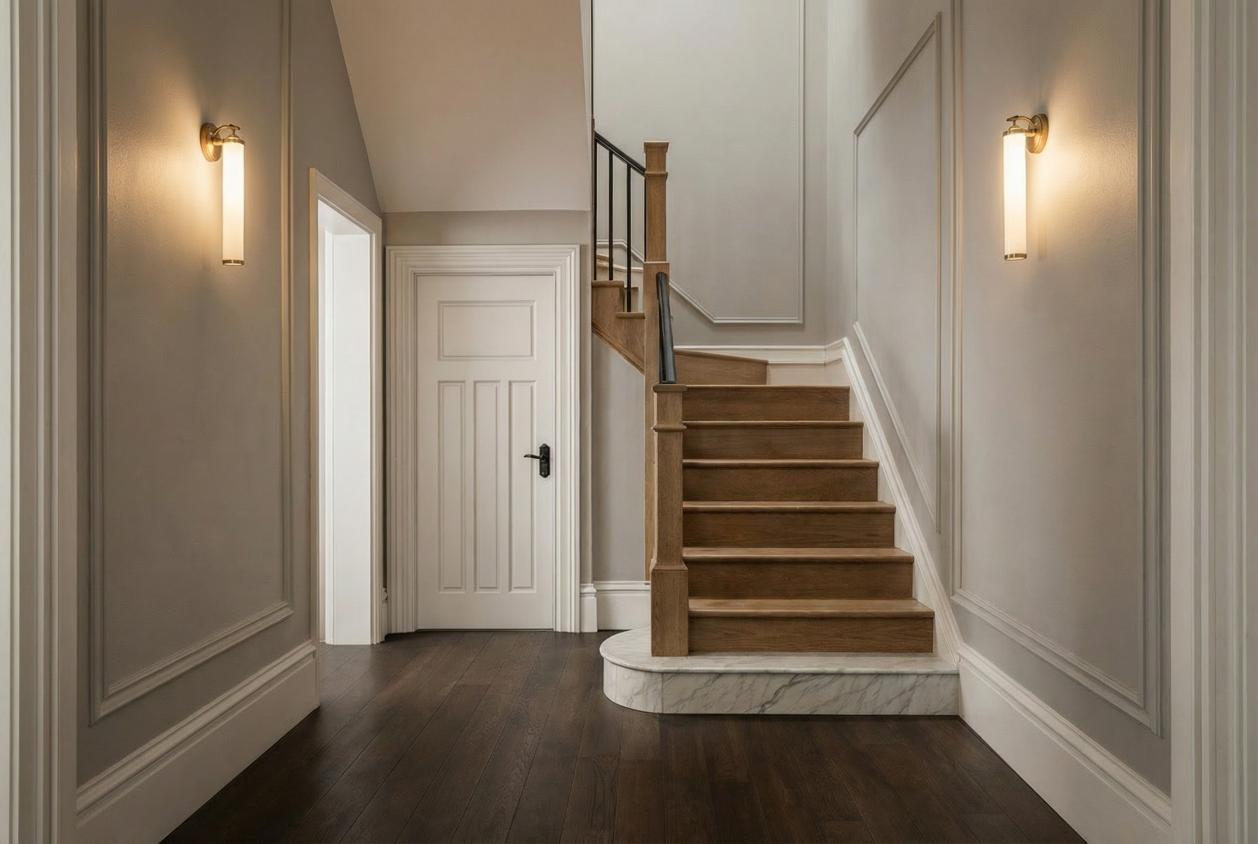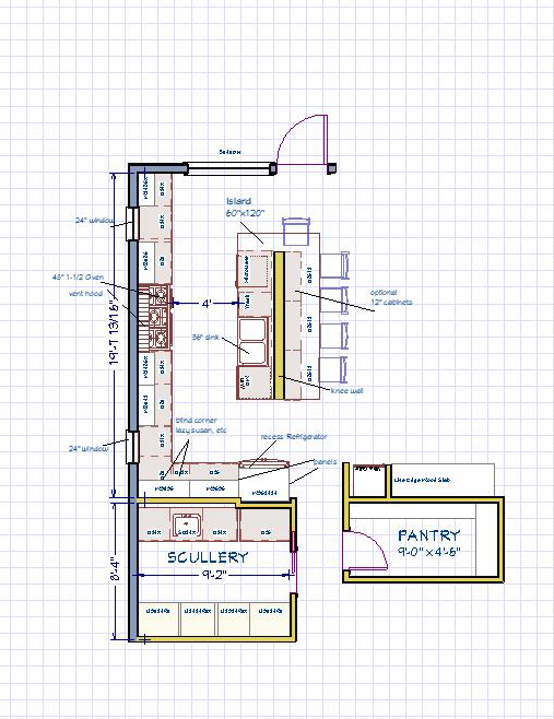 render the kitchen in 3d using the attached 2d layout ceilings are 10 feet tall use warm tones wall paint will be origami white ceiling will be 20 tint of the origami white the upper cabinets will be origami white lower cabinets will be natural rift sawn oak countertops will be taj mahal honed cabinet hardware will be modern in champagne bronze finish appliances will be stainless