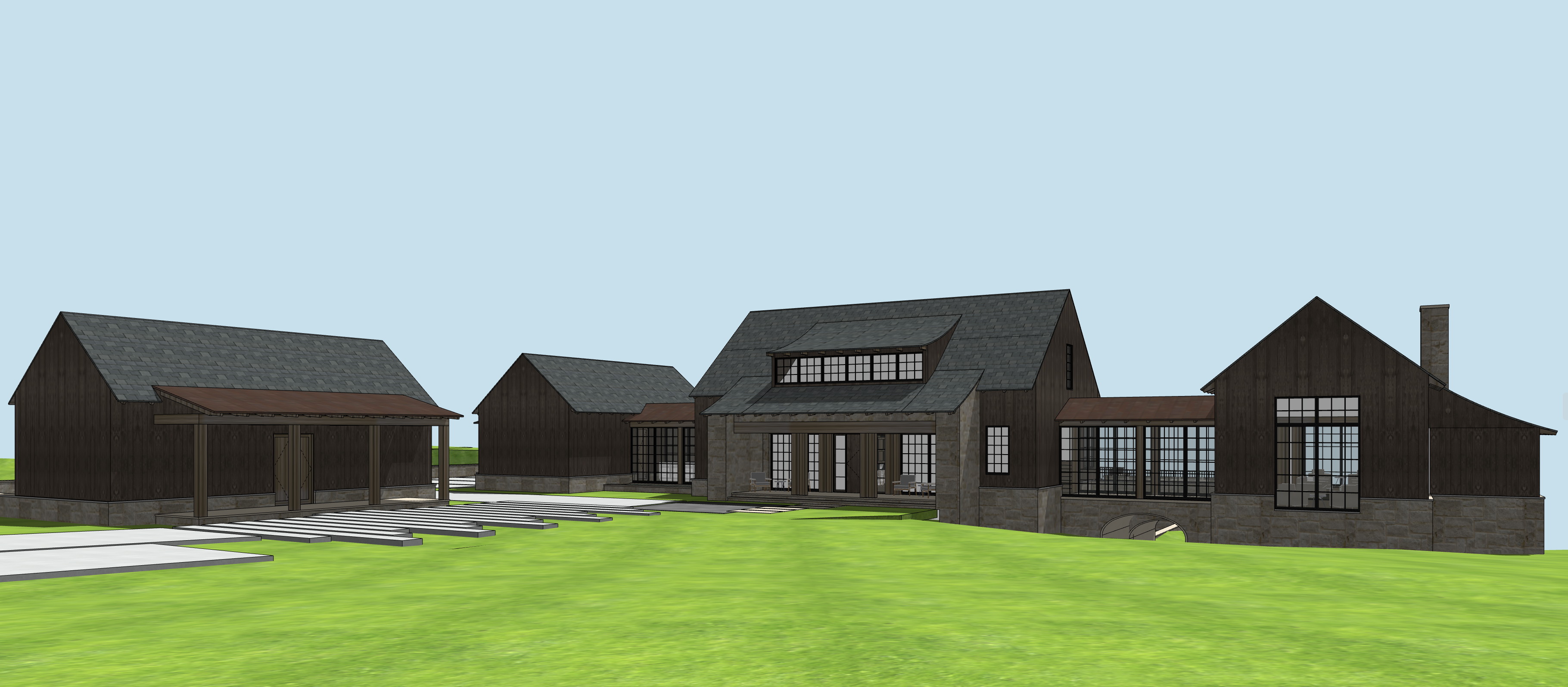 reclaimed wood siding granbury limestone slate roof and copper roof trees in the background