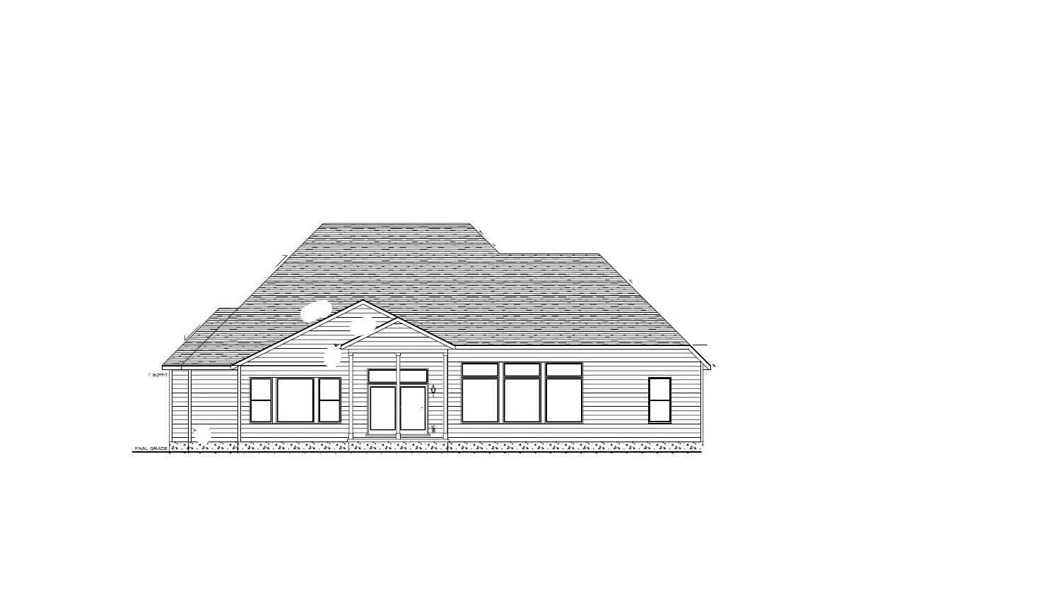 make as photorealistic as possible while keeping textures the same as selection professional landscaping in indianapolis indiana with good lighting match materials to plan and remove any text vertical siding color and trim to be 626366 moire black roof by certainteed black soffit and fascia black windows