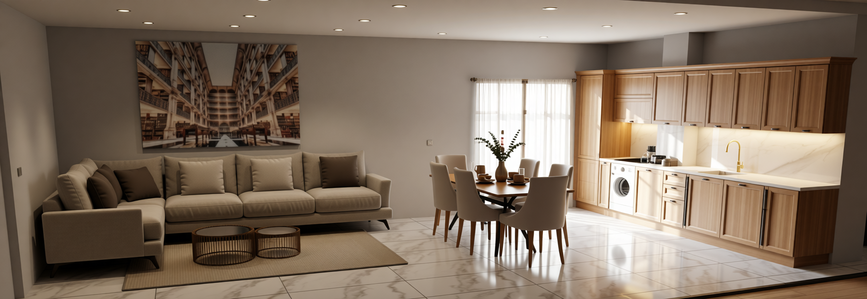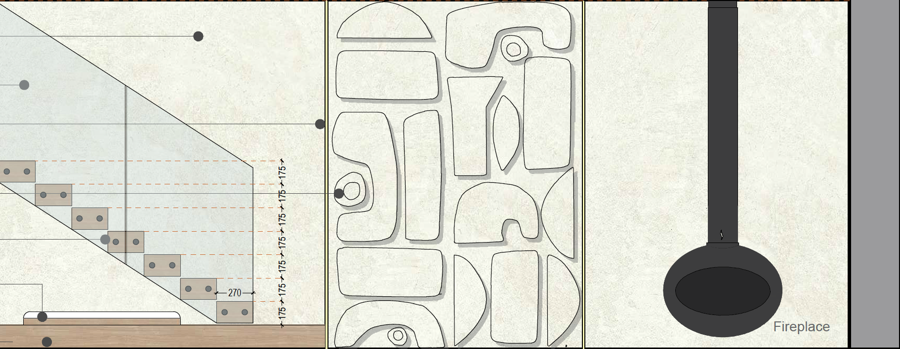 transform the uploaded architectural elevation into a high end photorealistic 3d interior render strictly preserve the exact geometry proportions stair layout railing position wall planes bas relief area bench platform and fireplace location from the elevation do not change the architecture add elements or reinterpret wall surfaces material rules very important walls all main wall surfaces must be finished in matte ivory white polished stucco effect wall paint subtle plaster texture only no wood cladding on walls no wood panels on walls no vertical or horizontal wood wall elements feature wall artwork zone plaster bas relief finished in matte ivory white polished stucco sculptural depth visible through soft shadowing same color family as walls no contrast materials stairs wooden stair treads in natural oak finish glass railing with clean minimal fixing details platform first step natural oak wood finish only on the horizontal walking surface vertical faces remain stucco bench wooden frame in natural oak finish upholstered seat in smooth ivory white fabric no additional textures or colors lighting recessed led wall light strips integrated into walls soft warm white glow approx 3000 3500k realistic light falloff and shadow depth no harsh contrast no color artifacts no blown highlights rendering style photorealistic architectural cgi natural global illumination clean calm luxury residential atmosphere neutral color balance no stylization no painterly effects no exaggeration reference image usage use the reference image only for lighting quality material realism and color temperature do not copy materials or cladding from the reference image if they conflict with the rules above