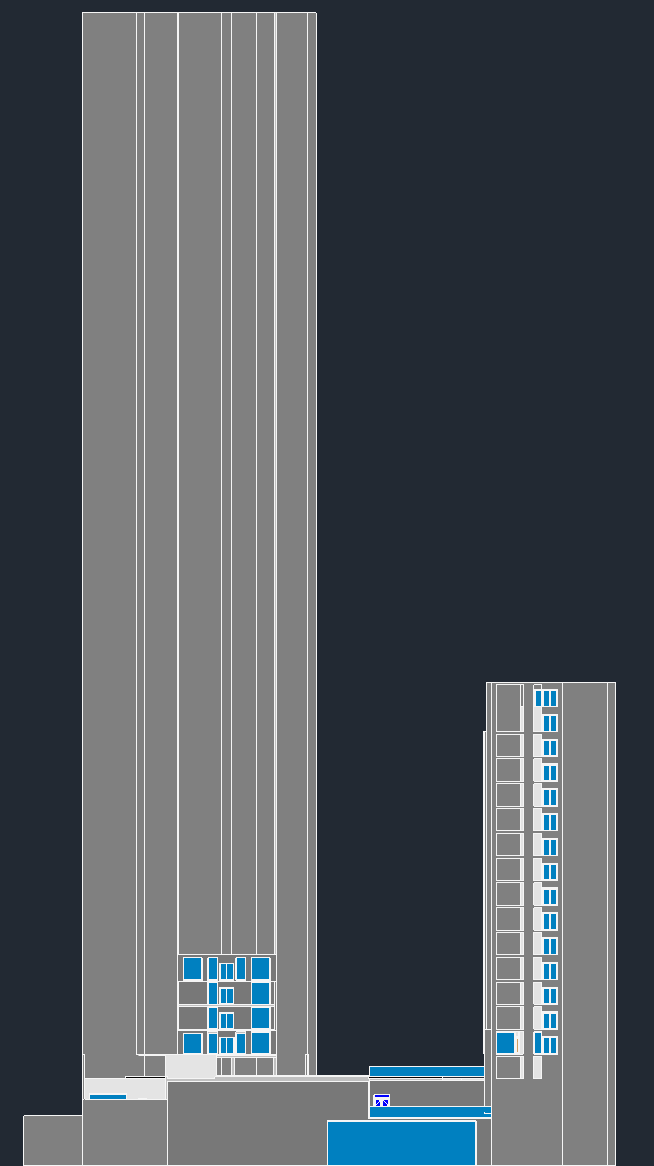 copy windows all the way up stone veneer on lower walls and modern aluminum panels in two colors on towers
