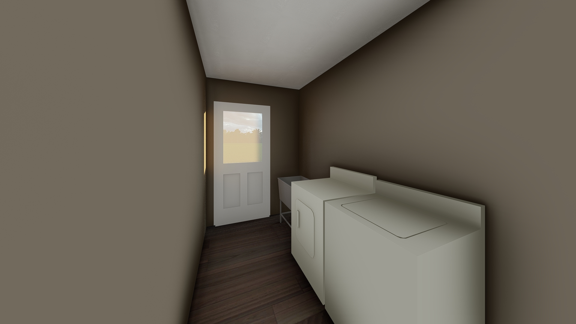 laundry room iwant white stacked washer and dryer and a counter with sink i want recessed lights and humidity fan on ceiling i want light colored walls cabinets to be light and shaker style the home style is referenced