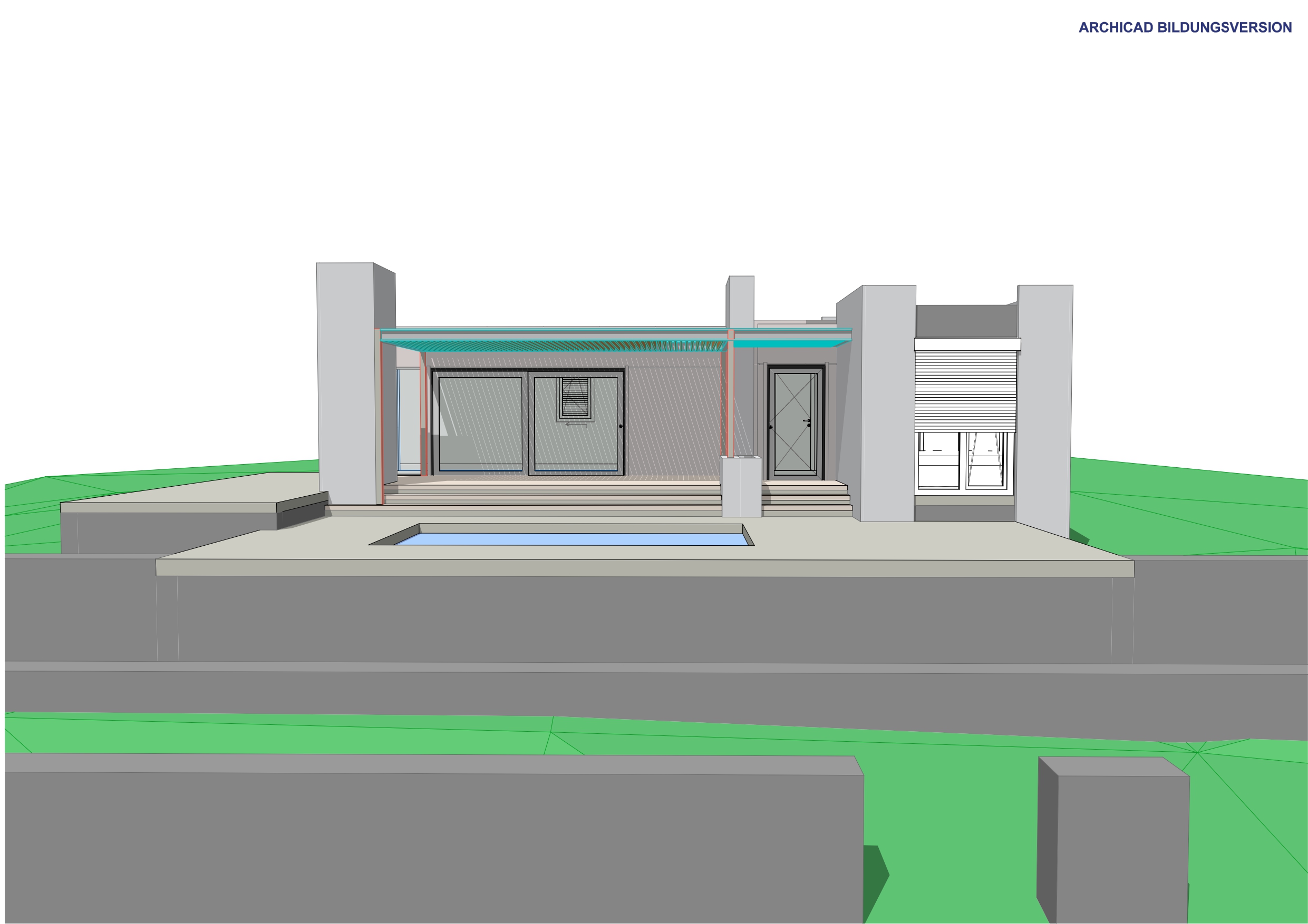 modern holiday villa in istria croatia on the hill stone pavement around the pool wooden pergola glass windows and door columns in natural stone facade and the rest in off white rough plaster stairs and floor around pool stone tiles pool furniture around the pool and outdoor seating in front of the glass windows up the stairs normal clear day mediterranean landscaping and people around the house car parked to the left of the house on the concrete part