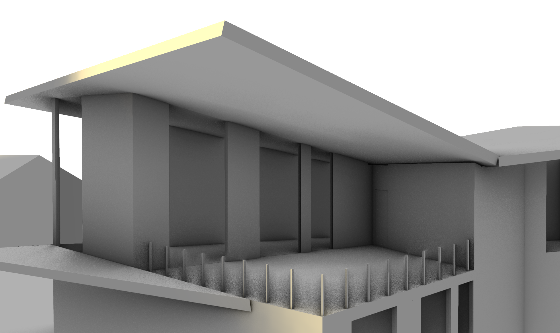 spacious outdoor balcony deck on the second floor of a modern home it features warm wooden decking a sleek slanted roof providing partial shade and large floor to ceiling glass windows that act as a transparent barrier into the bright dayroom area the space includes minimalistic railings soft natural lighting and a harmonious transition between indoor and outdoor living emphasize architectural realism clean lines and balanced proportions