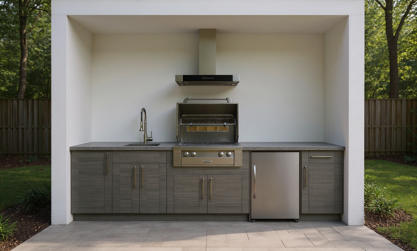 sculptural sideboard a mid century or contemporary console in walnut or oak clean lines raised legs minimal hardware style with one tall vase with greenery two stacked books one sculptural object option c round pedestal table a small round pedestal table wood or stone style with a tall vase coffee table books small bowl or decorative piece keep negative space around it for an airy feel style with artwork leaning against the wall small plant candle and decorative tray option e oversized floor vase only no furniture one large sculptural floor vase ceramic or matte finish with tall branches clean minimal editorial look general instructions match the lighting to the original image for realism ensure the proportions of all new furniture are accurate to the space keep styling clean modern and elegant keep shadows and reflections consistent with the existing environment