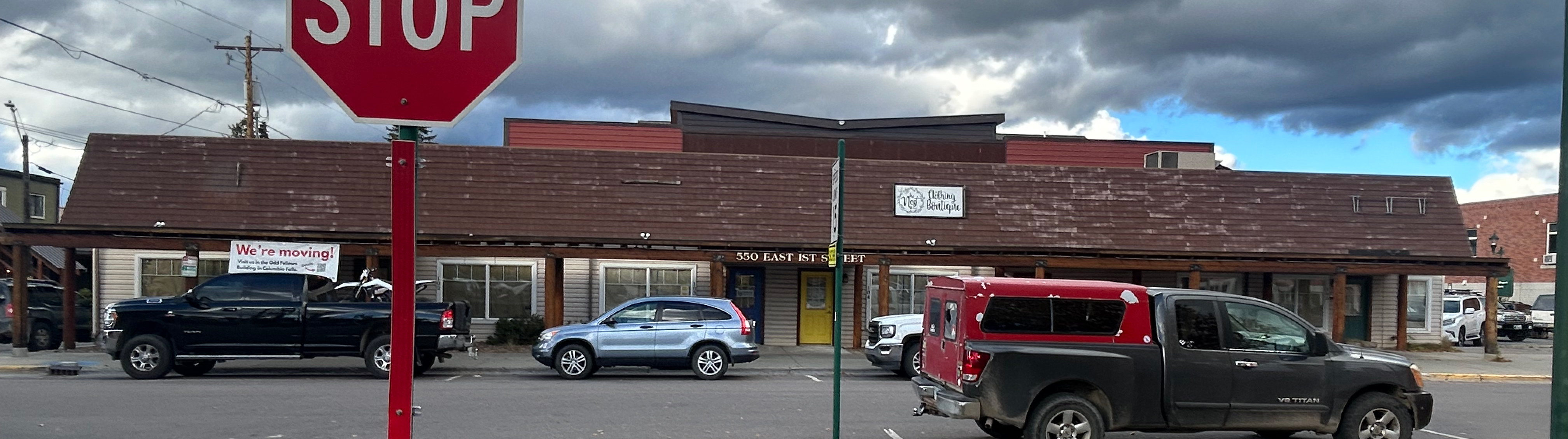 remove cars and sign posts from the scene in front of this building render the building in the style of a european bistro update the siding to a paneled pub facade add an inviting multi paned window scape for seating at the left quarter of the facade change the mansard roof to a false front in a bistro pub style roof with lighting over a central sign architecture