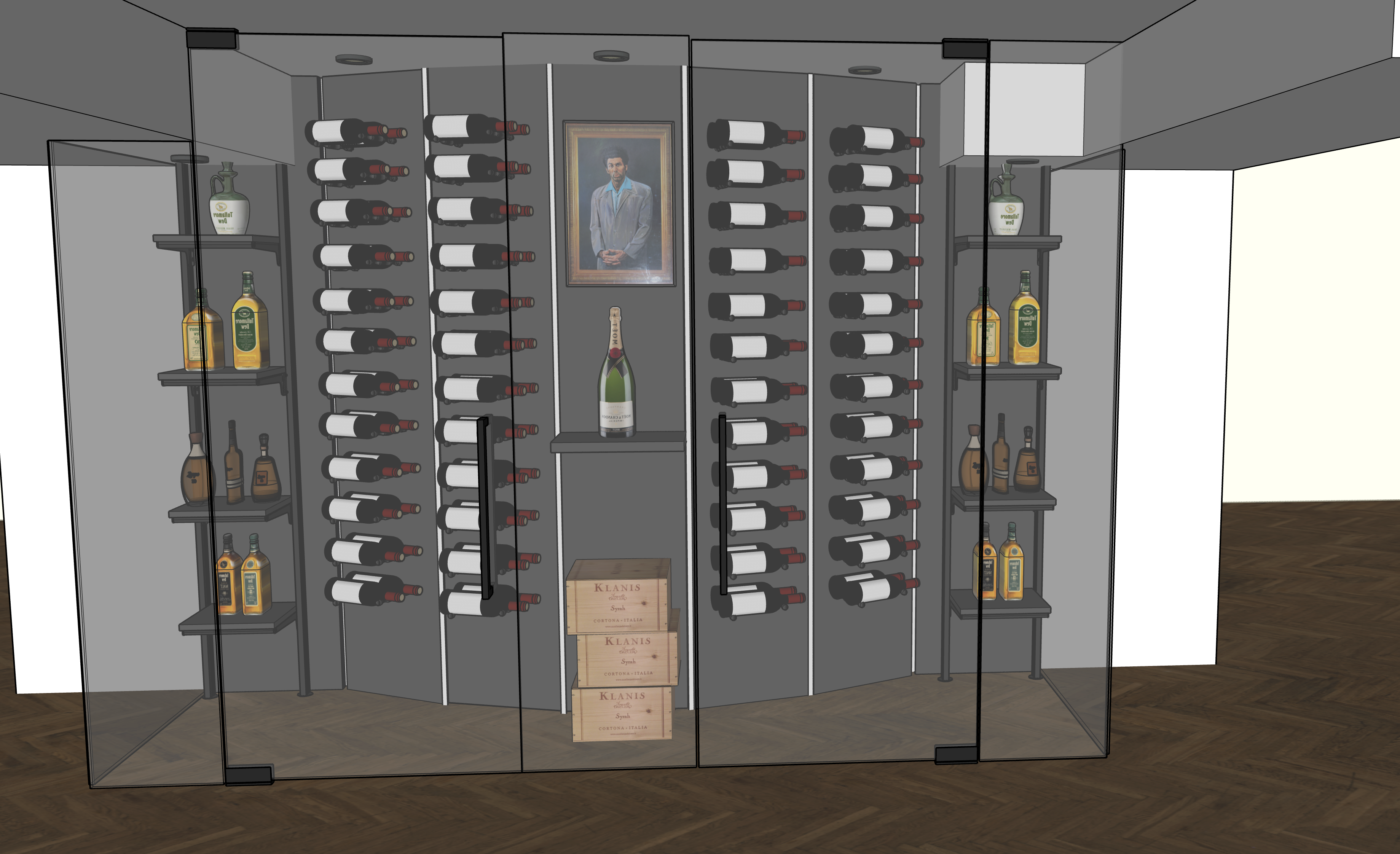strip lights between every grey panel