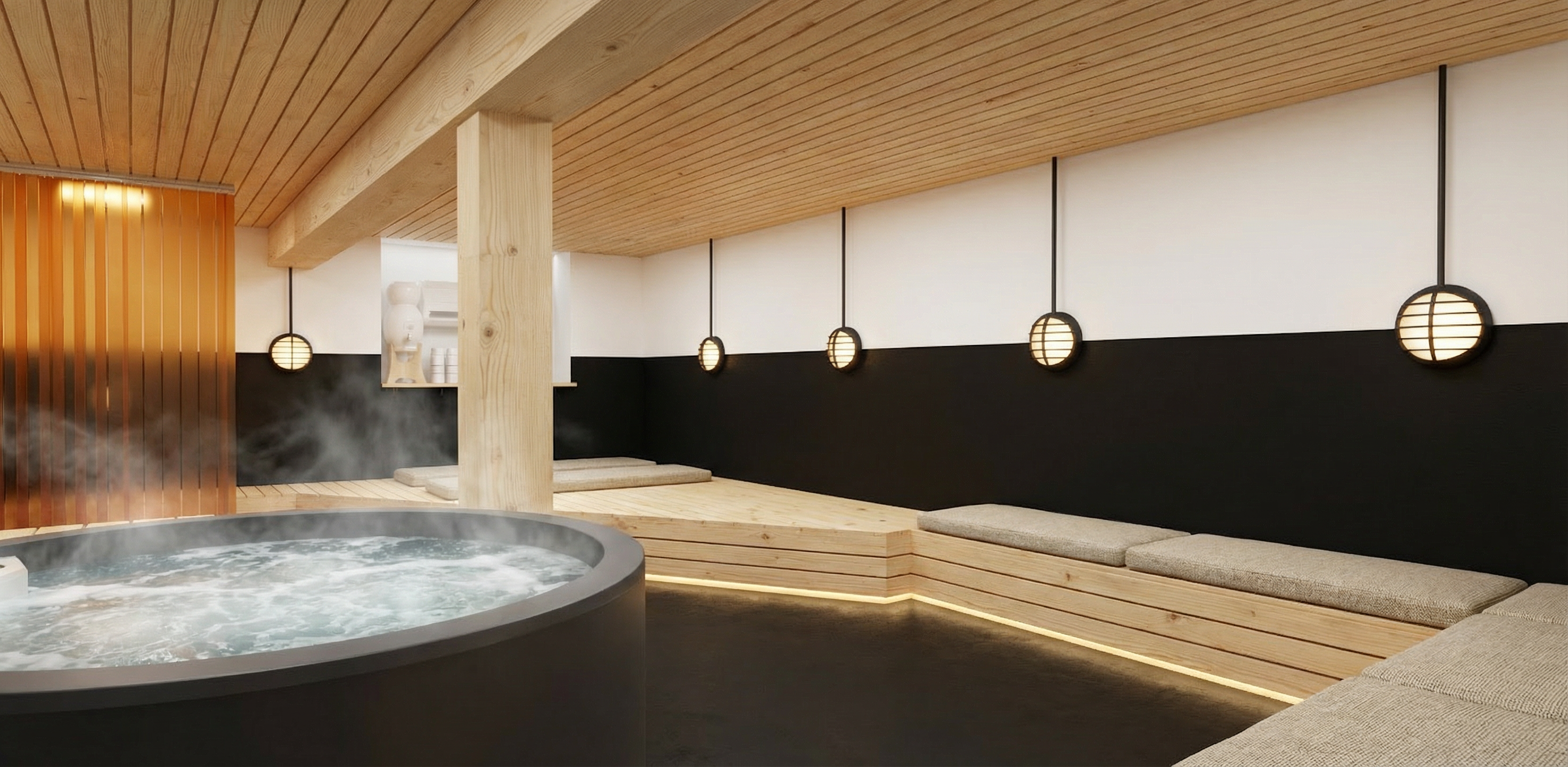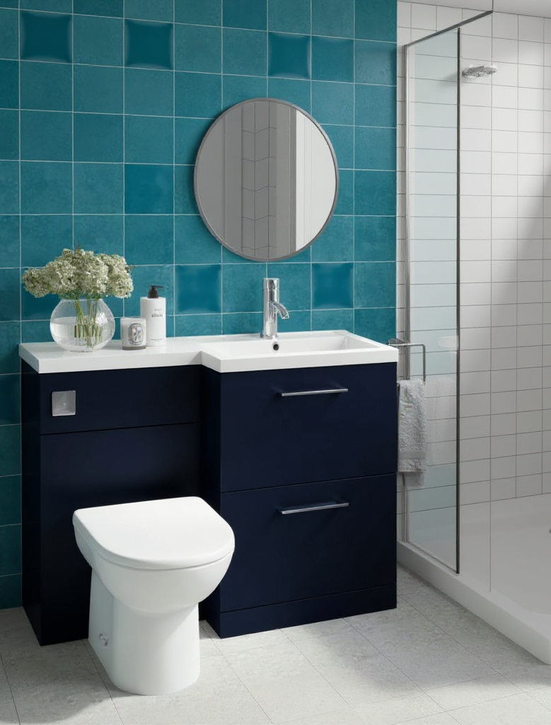 half wall blue and half orange also in the shower