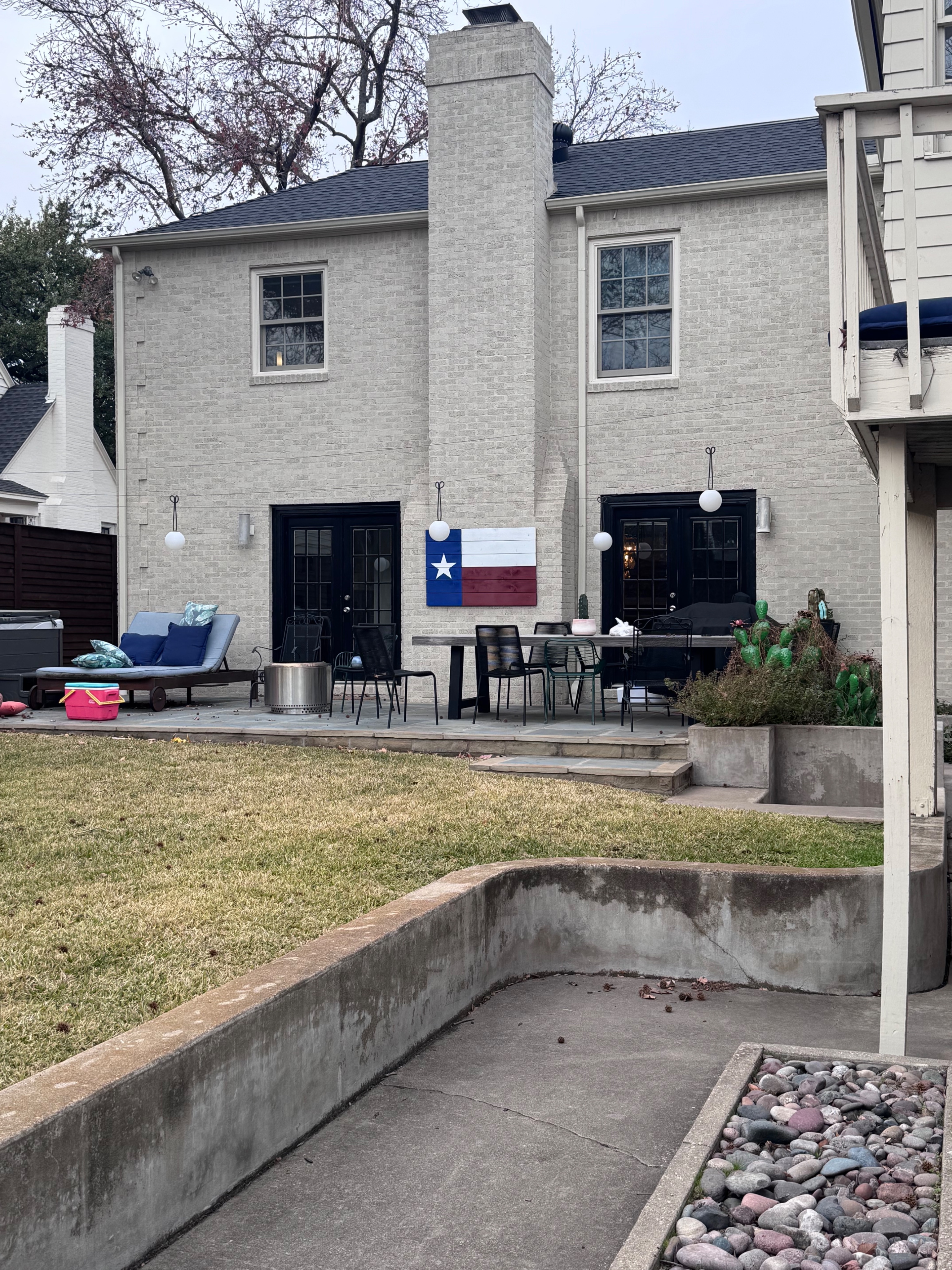 create a back patio cover that fits the style of this 100 year old home