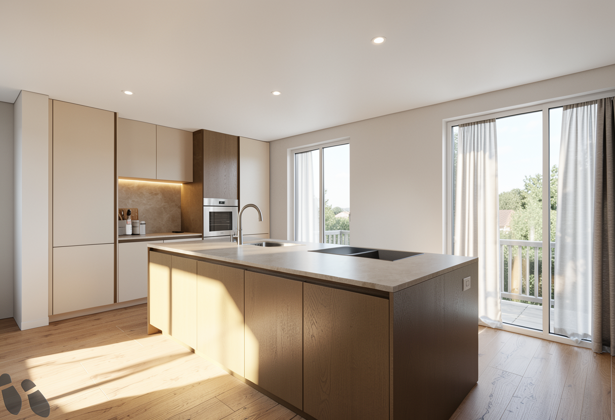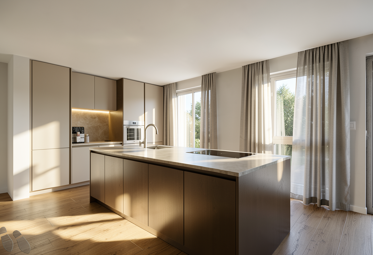 convert this floor plan into a realistic isometric 3d view of a full house show the space from an elevated angle with furniture walls and details visible ambiance chaud bois claire canap claire use the same furniture as shows on the plan do not change the orientation of the floorplan