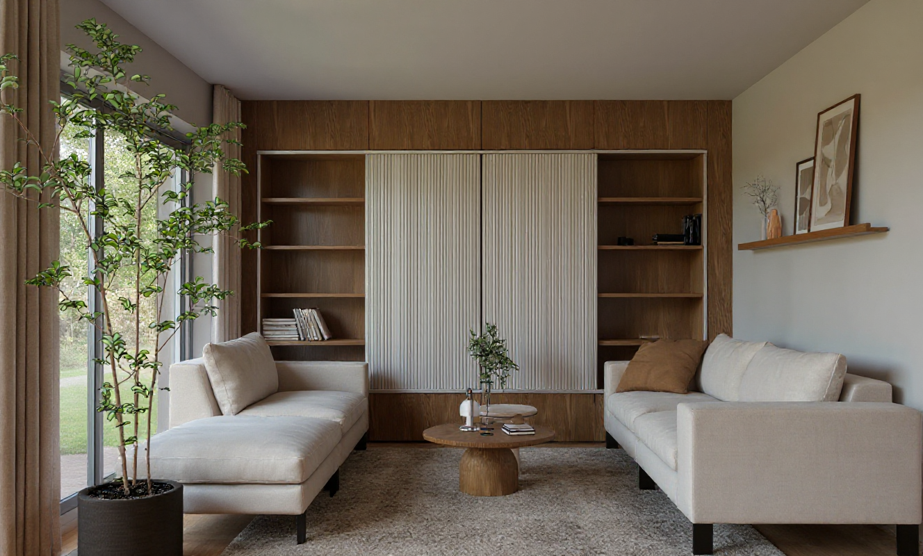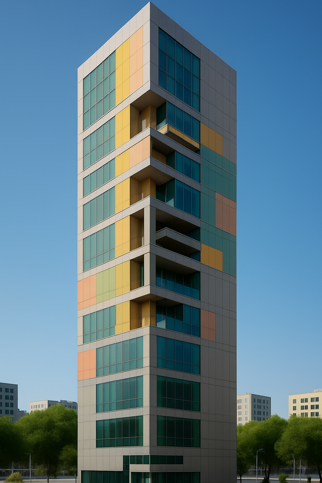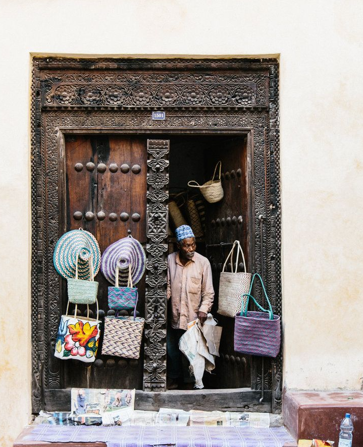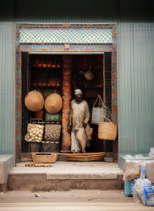 fish market glasss facade wooden canopy trees people crowded neutral colors africa architecture