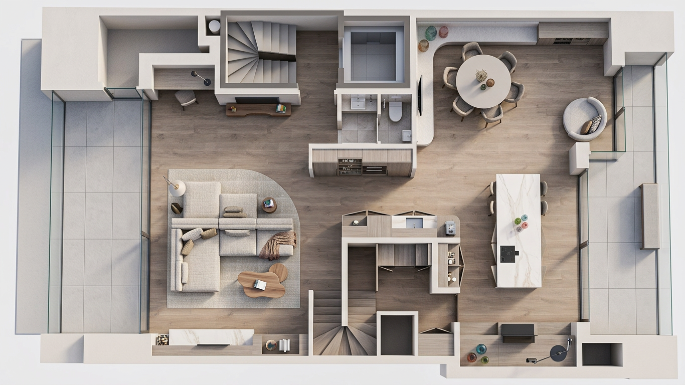 make the rendering look photo realistic keep the cabinet over the toilet make the pendants chrome and the door casing and door should be white the hexagon tile behind the toilet should be a mirrored finish