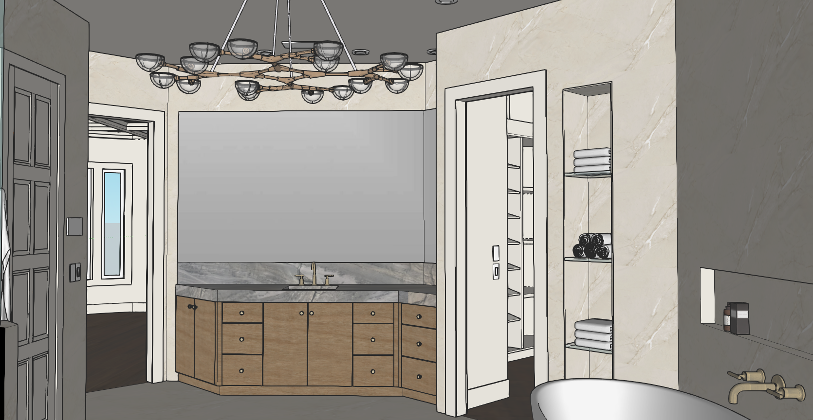 make realistic while keeping everything the same lit the vanity toe kick bathtub niche towel shelves and mirror