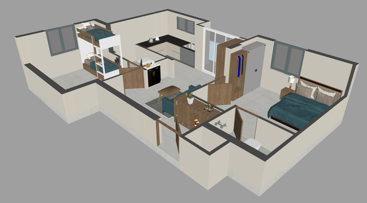 create a highly realistic isometric render of the given space viewed from an isometric angle 45 or true isometric preserve all existing materials textures and the original color palette exactly as provided with no alterations or substitutions maintain accurate material finishes proportions and detailing use balanced neutral lighting to enhance realism without introducing color casts ensure clear depth soft shadows and realistic reflections while keeping the overall appearance true to the original design intent