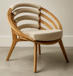 modernist perspective shot rattan weaving inspired back portion of a chair wooden legs finish upholstered seat and back architecture